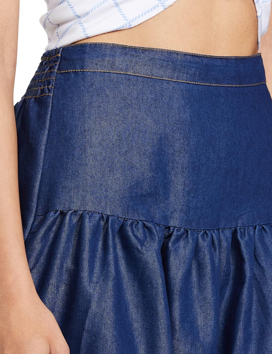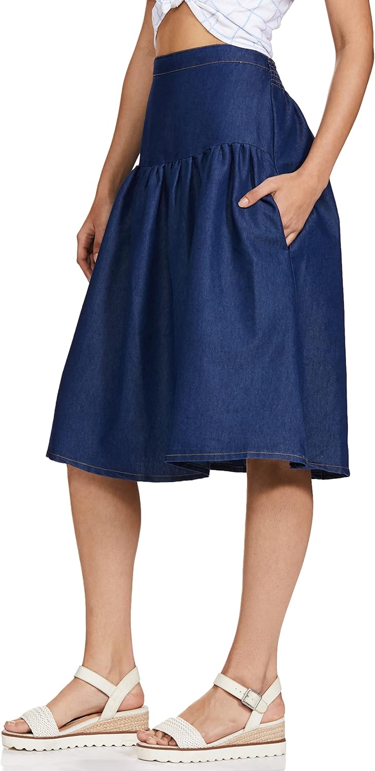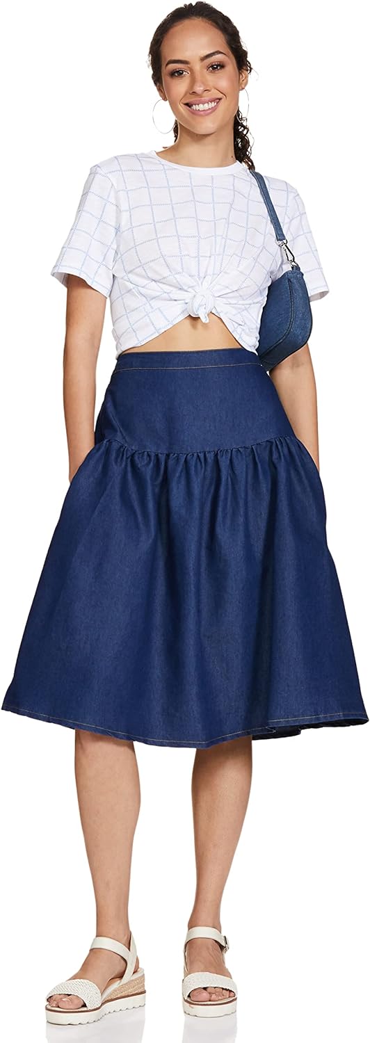 - Blue solid skirt with breathable fabric which allows air circulation and keeps you cool