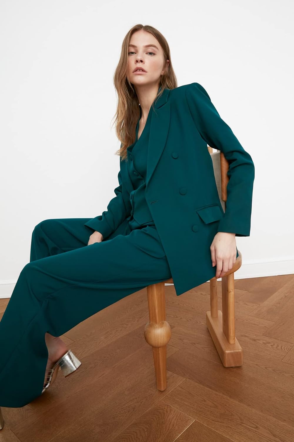 Model's Measurements: Height: 1.80, Bust: 83 Waist: 63, Hip: 92 Combination vest code: TWOSS21YE0009, Combination pants code: TWOSS21PL0189 The product on the mannequin is size S/36. 95% Polyester 5% Elastane, Woven Fabric Lining : 100% Polyester Back length 70 cm for size 36 Our products will be sent with TRENDYOL label.