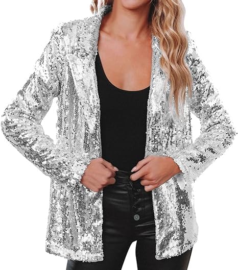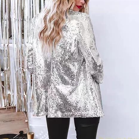 Womens Sequin Blazer Jacket Open Front Long Sleeve Sparkly Glitter Par – BUYO
