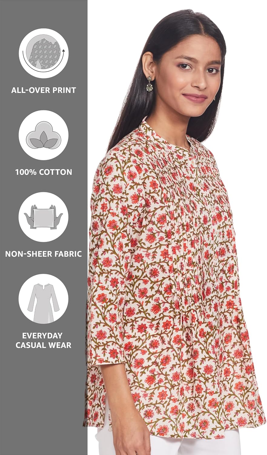 Amazon Brand - Myx Women's Cotton Screen Print Straight Short Kurti (S – BUYO