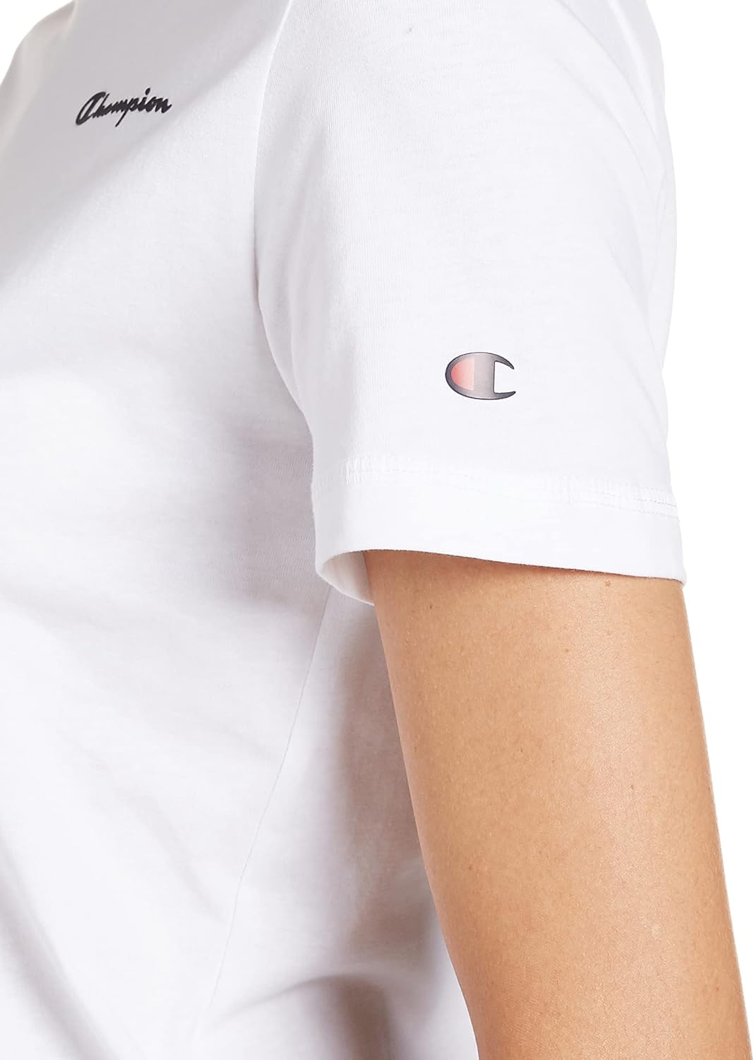 Refresh your basic range with our traditional Champion T-shirts. This crew neck t-shirt is detailed with our large classic logo printed on the chest and the traditional C logo printed on the left sleeve. Pair it with a pair of our essential tracksuit bottoms or leggings.
