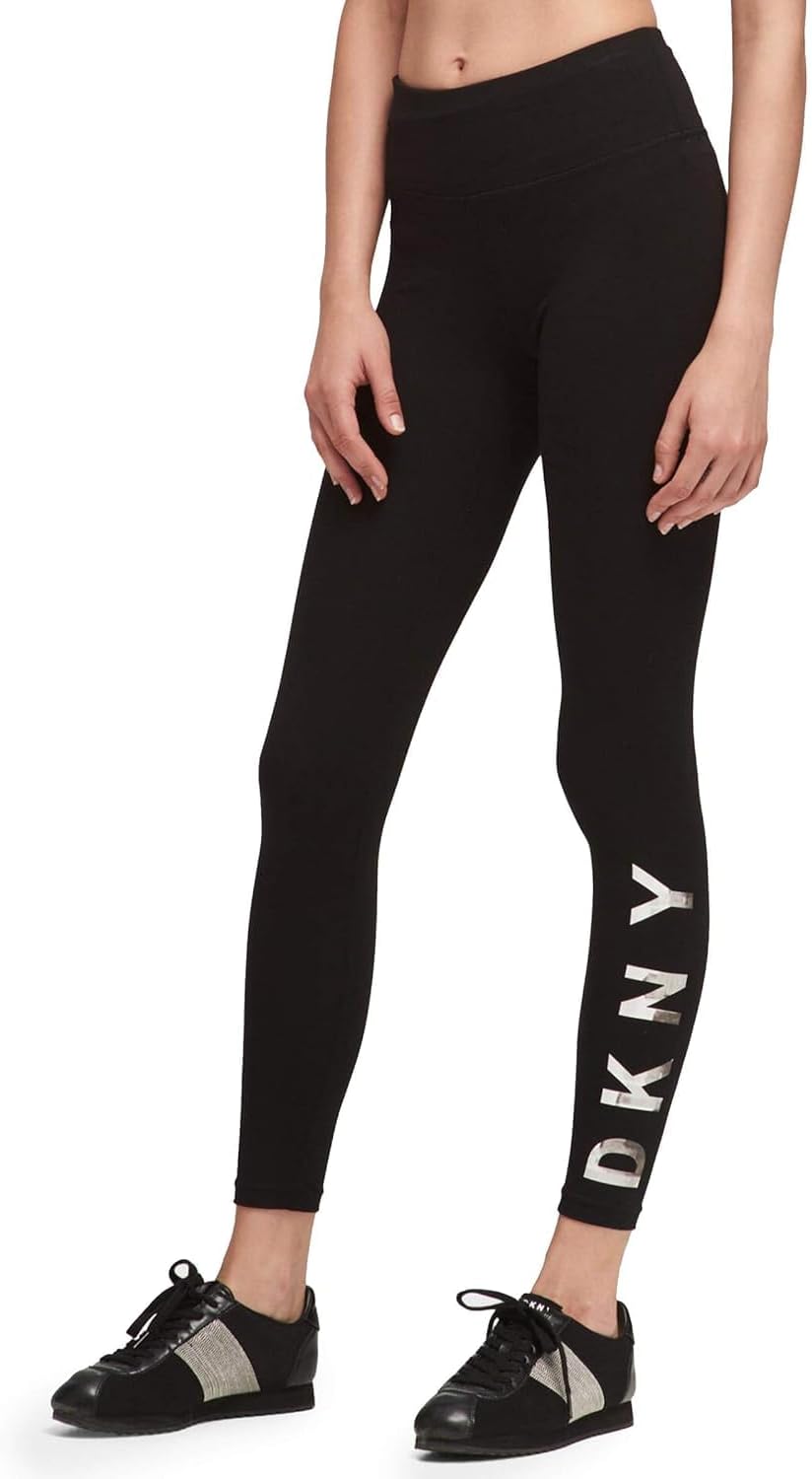 Get into these comfy sporty leggings by DKNY Sport, designed to strect with a comfortable high rise and the iconic DKNY logo printed the the lower leg