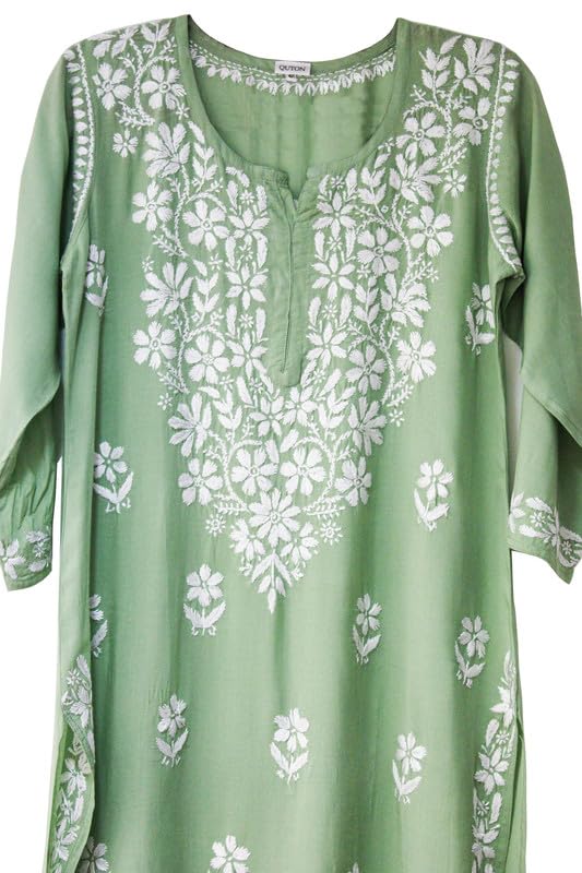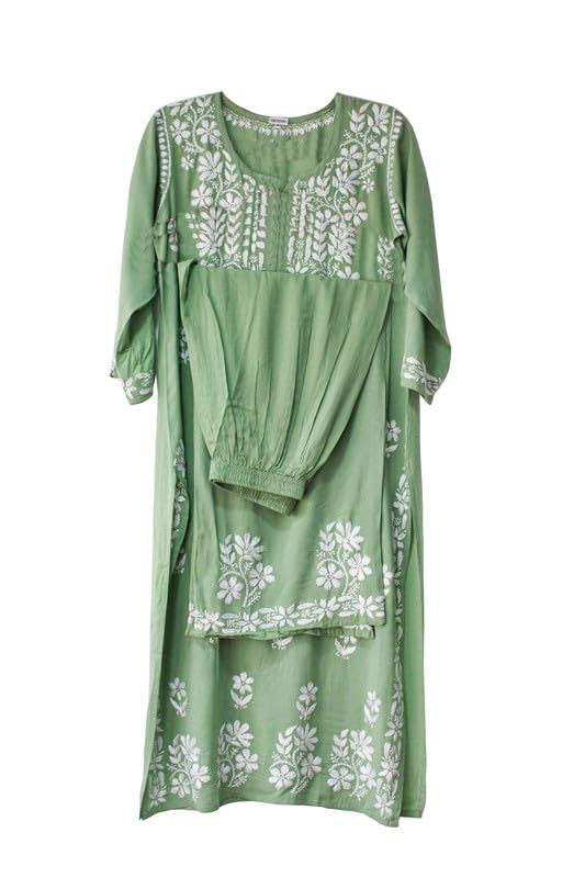 QUTON Women Handcrafted Lucknawi Chikan Modal Kurti Palazzo Set – BUYO