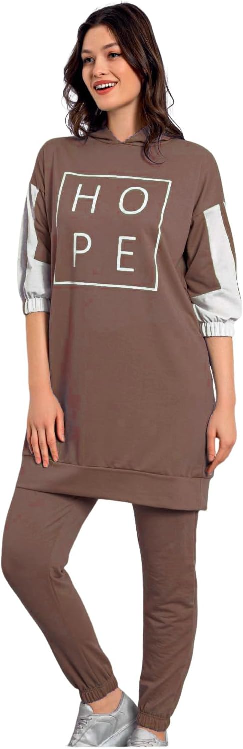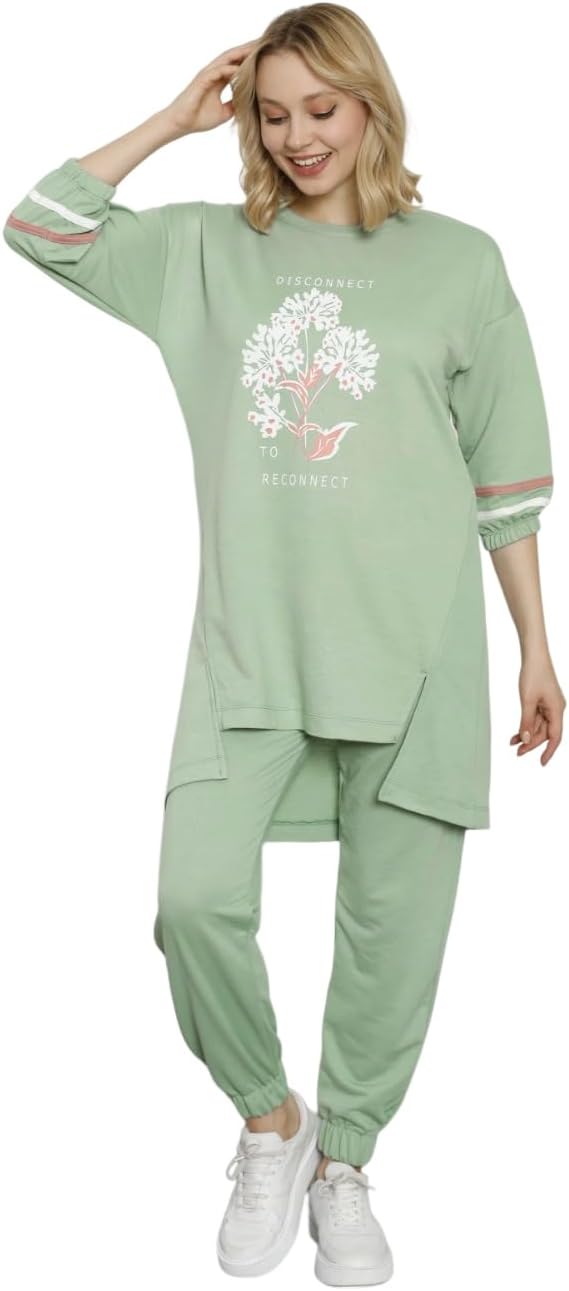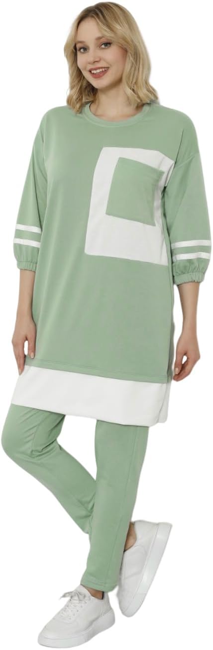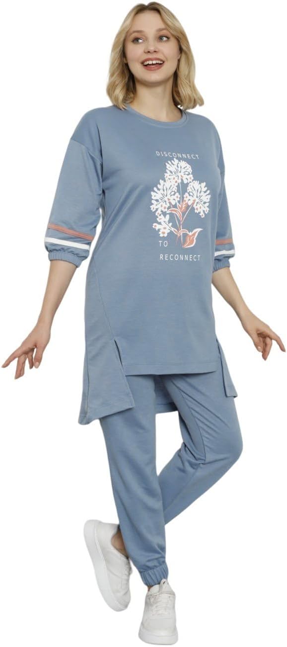 Wesha Turkish Cotton Tunic Long Top and Pants Ladies Homewear Gymwear Sportswear Set Modest Tracksuit Set for Women