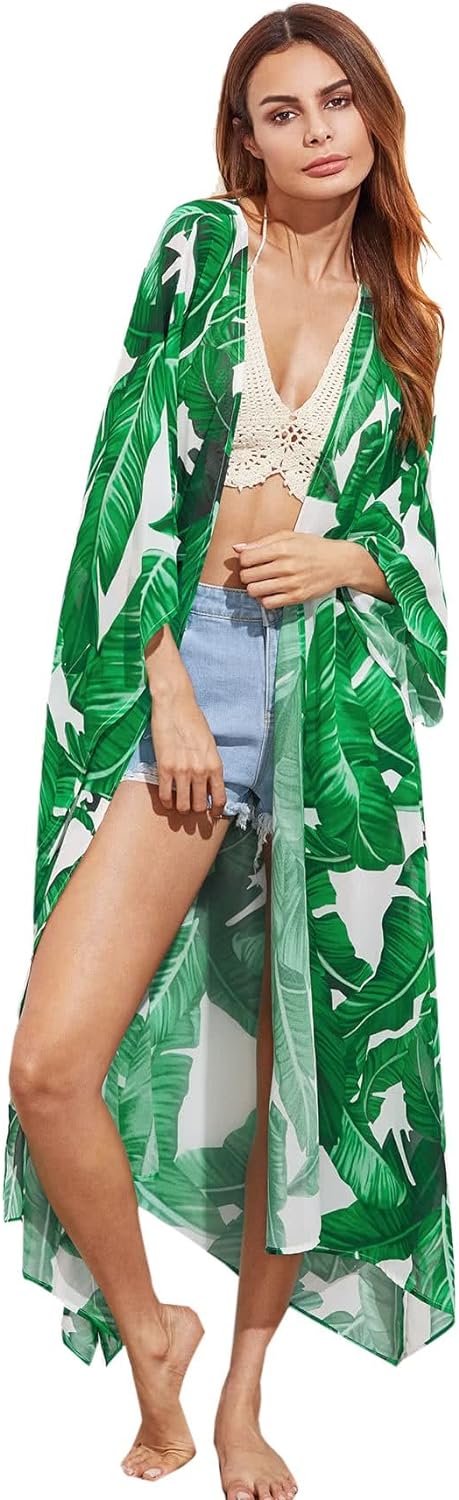 • 💗【Unique Design】--- Open front kimono cover ups, floral print, half sleeve, cardigan cover up, casual kimono cardigan coats, long enough to cover hip. Beat the heat in this sexy beach swimming suit cover up!