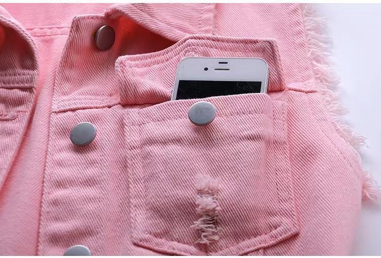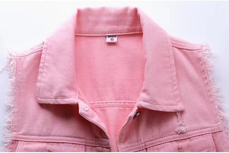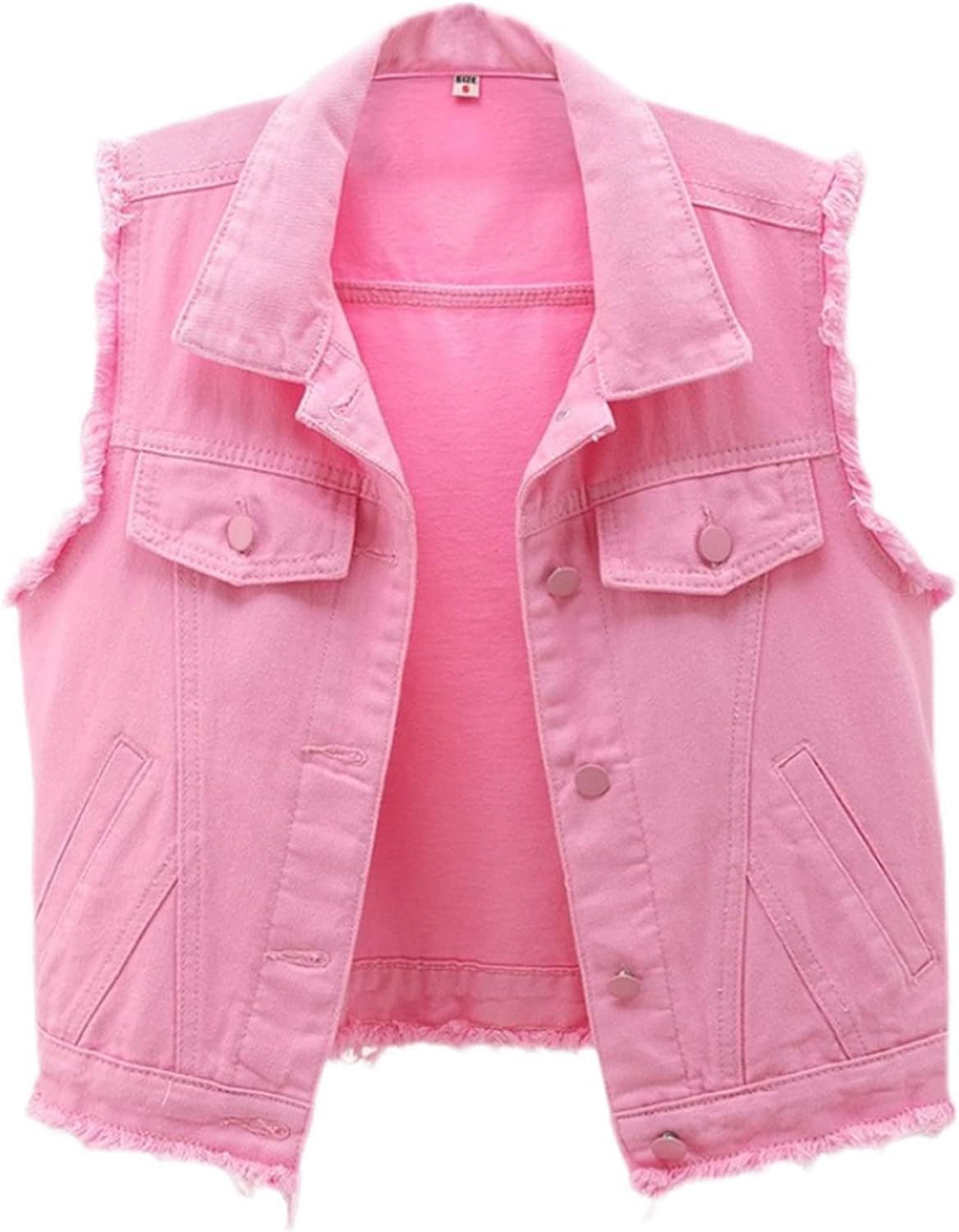 Women Distressed Denim Vest Jacket Casual Sleeveless Slim Fit Ripped Jean Vest Crop Tops