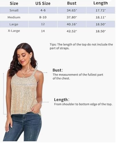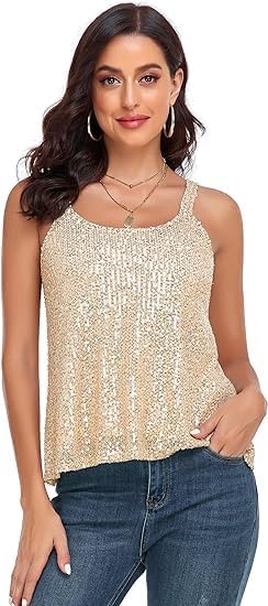 - Lightweight material, soft lining, protect skin from scratching, comfortable for all day wearing. Sparkle shimmer camisole, sequin tops for women evening party.