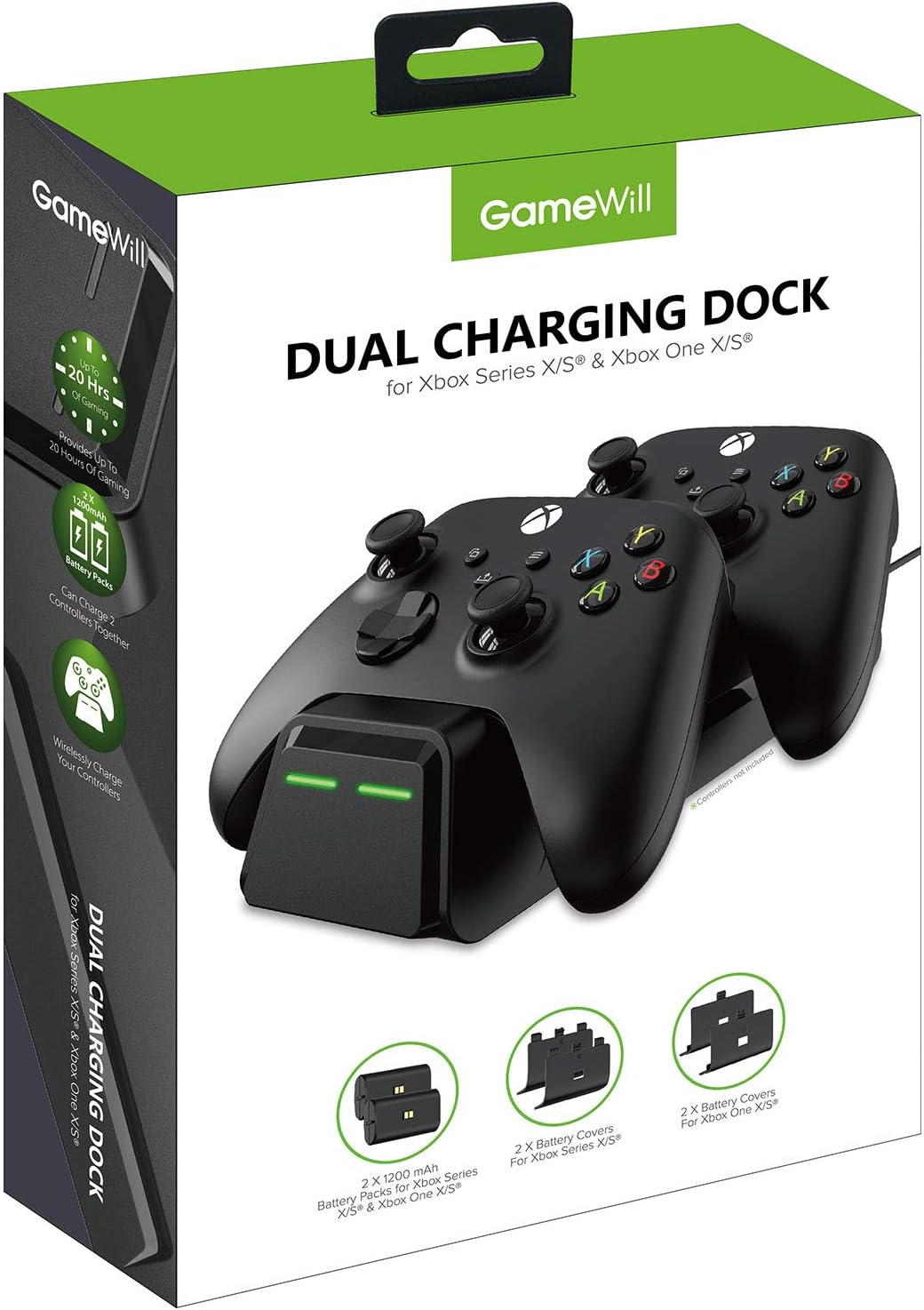GameWill Dual Charging Dock with 2 x Rechargeable Battery Packs [EXTRA POWER 1200 mAh] for Xbox Series X and Series S (also compatible with Xbox One X/S) - Black- USB