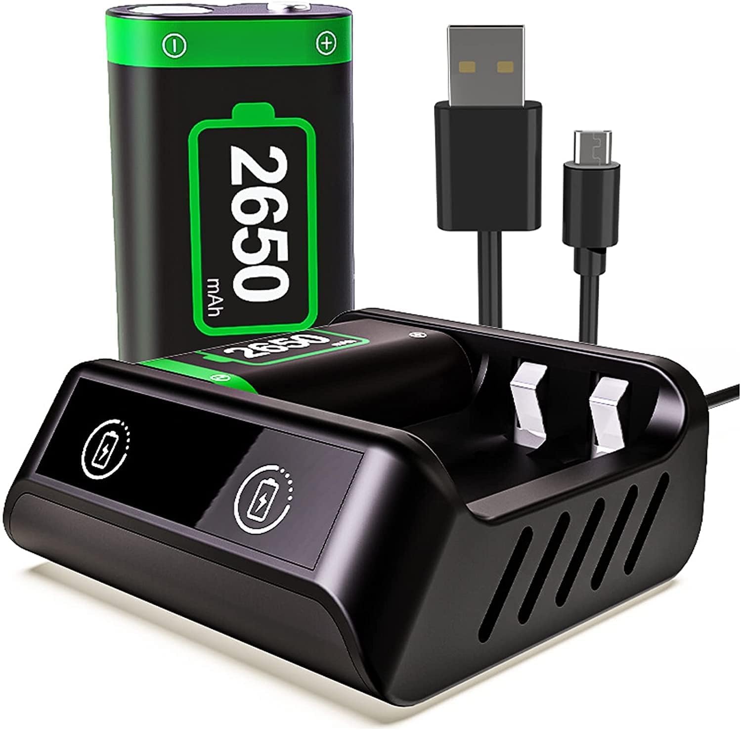 🎮【Superior Compatibility and High Capacity】 Battery Pack Rechargeable Controller Battery Pack Charger Set Perfectly Compatible with Xbox One/Xbox One S/Xbox One X/Xbox One Elite/Xbox Series S/Xbox Series X, Comes with 2 x 2650 mAh large capacity battery provides amazing power