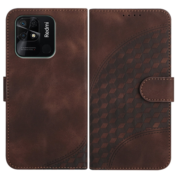 For For Xiaomi Redmi 10C 4G Global/10 India YX0060 Elephant Head Embossed Phone Leather Case with Lanyard(Coffee)