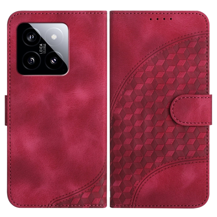 For Xiaomi 14 YX0060 Elephant Head Embossed Phone Leather Case with Lanyard(Rose Red)