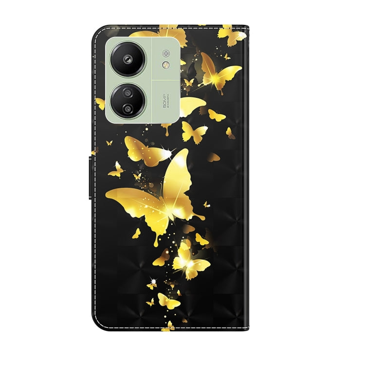 For Xiaomi Redmi 13C 5G / 4G 3D Painting Pattern Flip Leather Phone Case(Gold Butterfly)