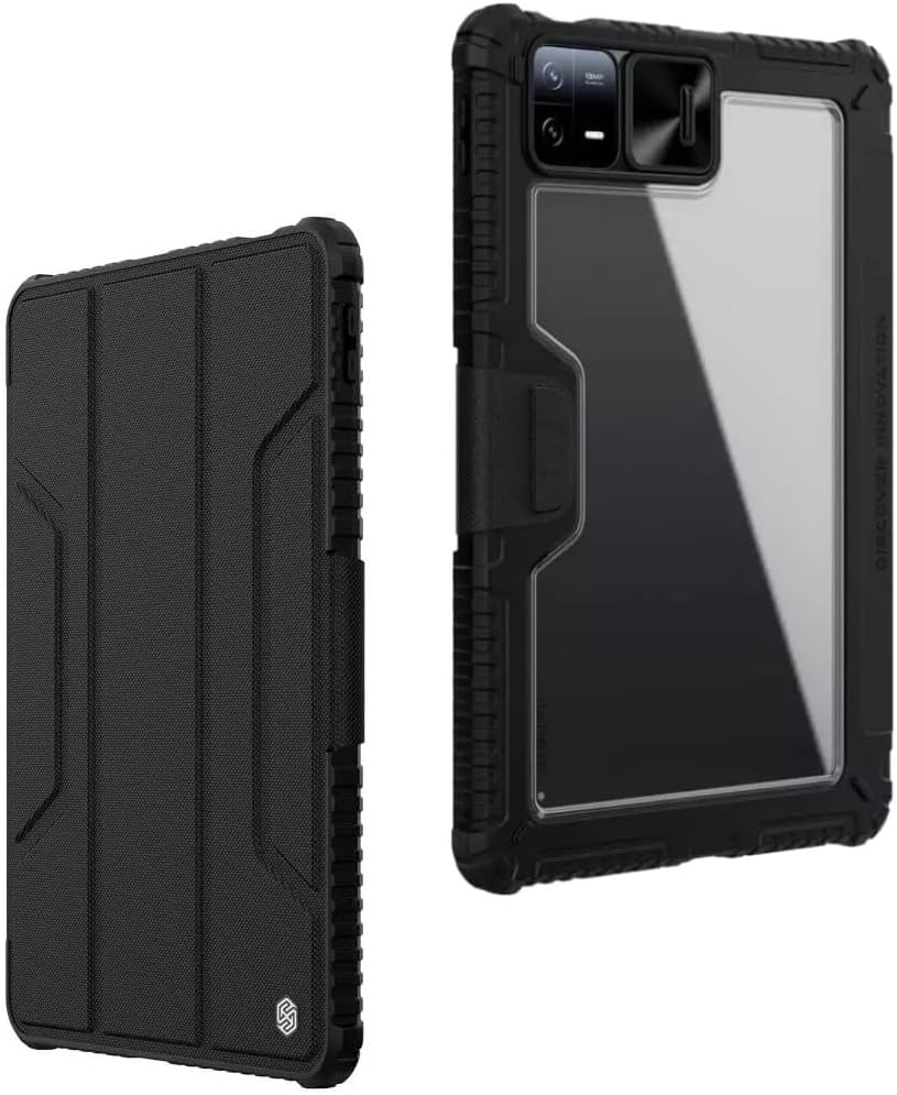 Nillkin Bumper Leather cover case for Xiaomi Pad 6,Xiaomi Pad 6 Pro Hard Pc Camera Protection Sheild Case With Pen Slot Anti-Fall Protective Cover For Mi Pad 6 / Pad 6 Pro (Black)