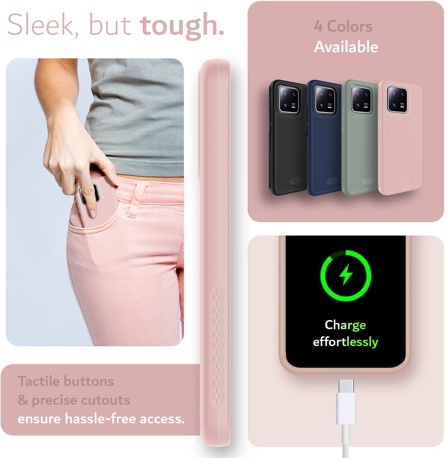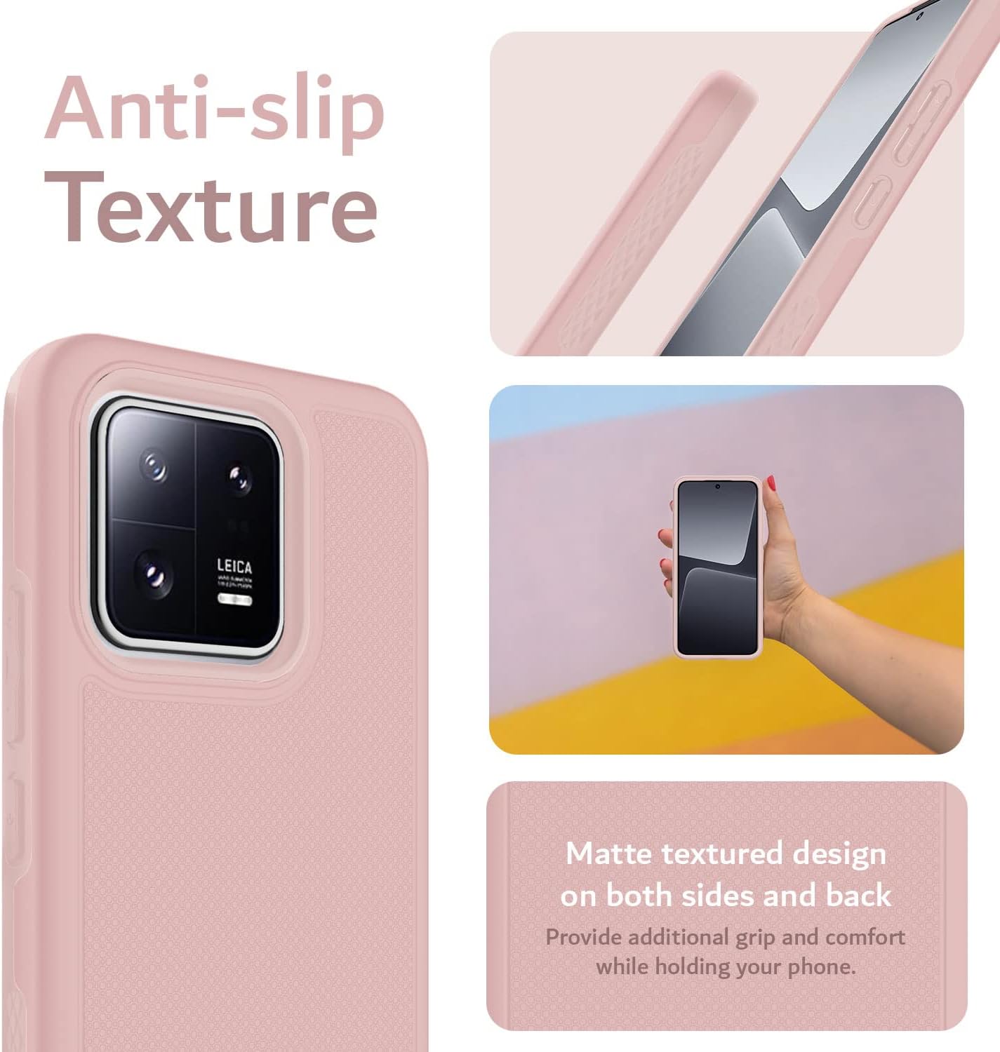 XIAOMI TUDIA DualShield Grip Designed for Xiaomi 13 Case, [MergeGrip] Military Grade Tough Shockproof Slim Dual Layer Non-Slip Heavy Duty Protective Phone Case Cover (Pink)