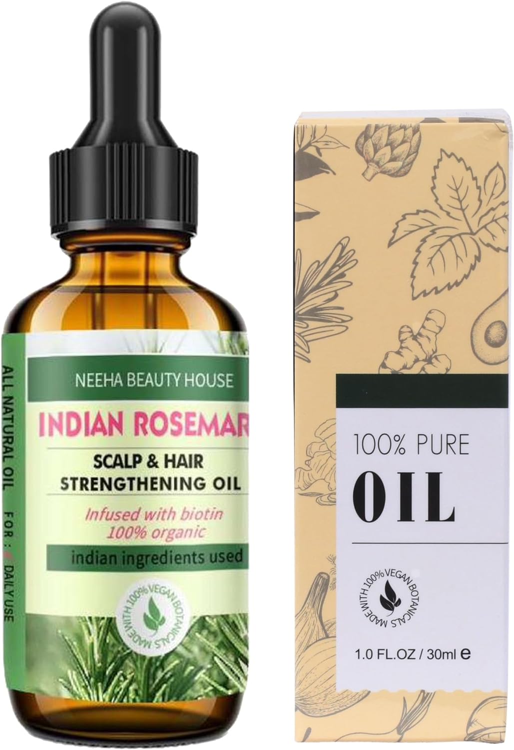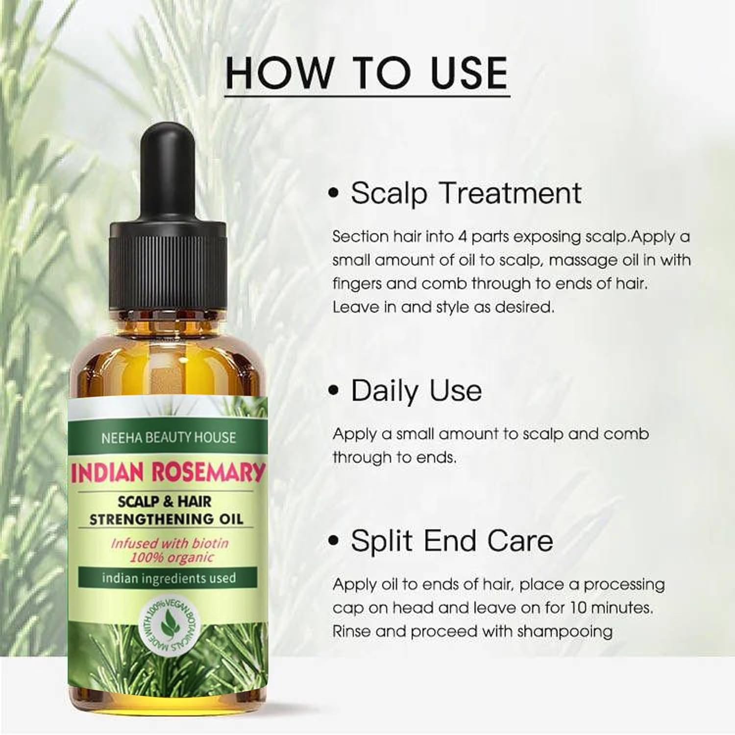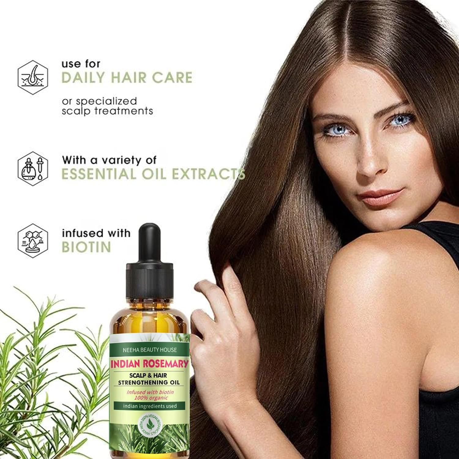 100% Organic Rosemary Oil For Hair Growth, infused with Biotin,Pure Organic Rosemary Essential Oils Serum for Dry Damaged Hair and Growth, Hair Loss Scalp Treatment