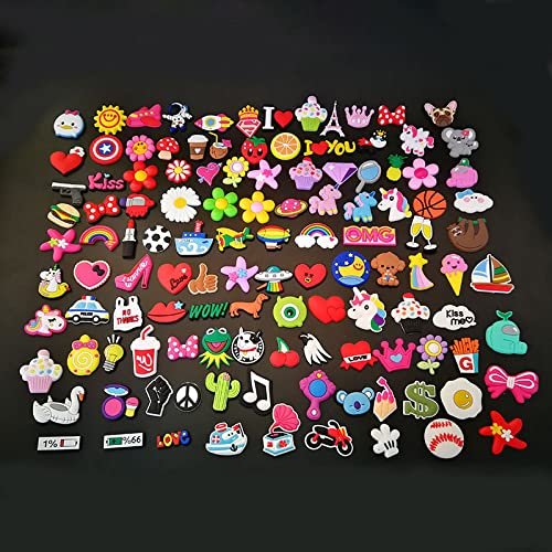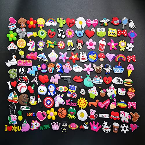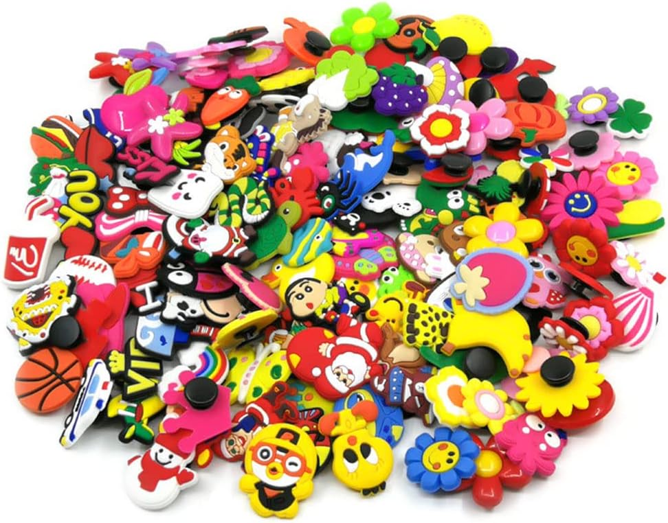 100PCS Shoe Decoration Charms Cartoon Shoe Charms Cartoon Accessories Decoration for Crocs Random PVC Charms Pins Croc Shoes Sandals Buckle Party Birthday Gift Bracelet Decorations for Adult Kids