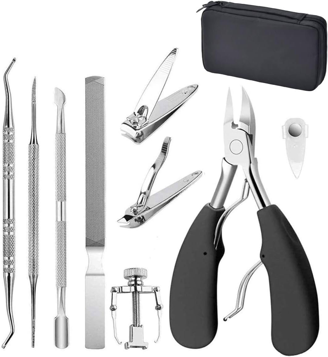 10pcs Ingrown Nail Clippers Kit with Stainless Steel Nail File, Toenail Tools, Toenails Treatment, Pedicure Tool Set, Professional Clipper for Thick Nails, Toe Nail Manicure Lifter with Carry Case