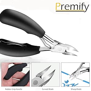 - Premify nail clippers are installed with precision grinding blades to provide clean and uniform cutting by using the curved jaws. The clippers is made of high-quality stainless steel, which is easy to be wiped or sterilized.