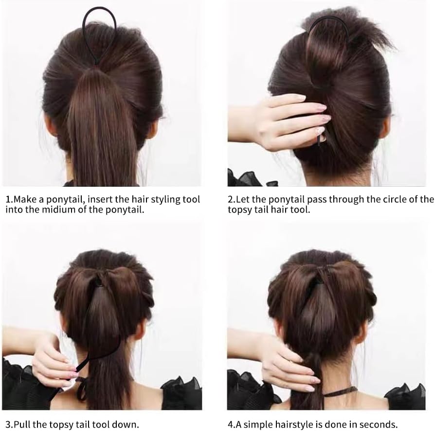 Hair Styling Accessory: Used for bun hair tool, topsy tail hair tool, hair braider, hair loop tool, pony tail flipper tool, braiding hair tool, hair loop styling tool, ponytail loop tool, topsy hair tool, donut hair bun maker, magic hair bun maker clip.