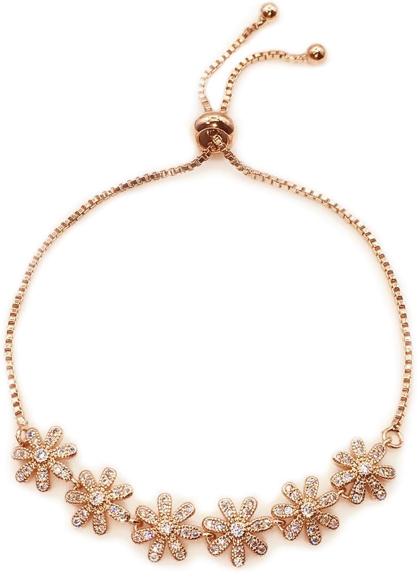 18K Gold Plated Cubic Zirconia Bracelet, Adjustable Clover Bracelet Chain,Classic Rose Gold Wrist Sparkling Jewelry for Women Girls…