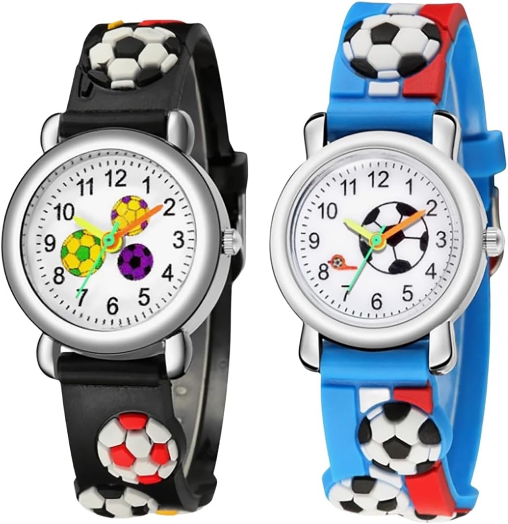 2 Packs Kids Watches for Boys 3D Football Cute Cartoon Silicone Children Toddler Wrist Watch Waterproof Time Teaching Easy to Read Watch