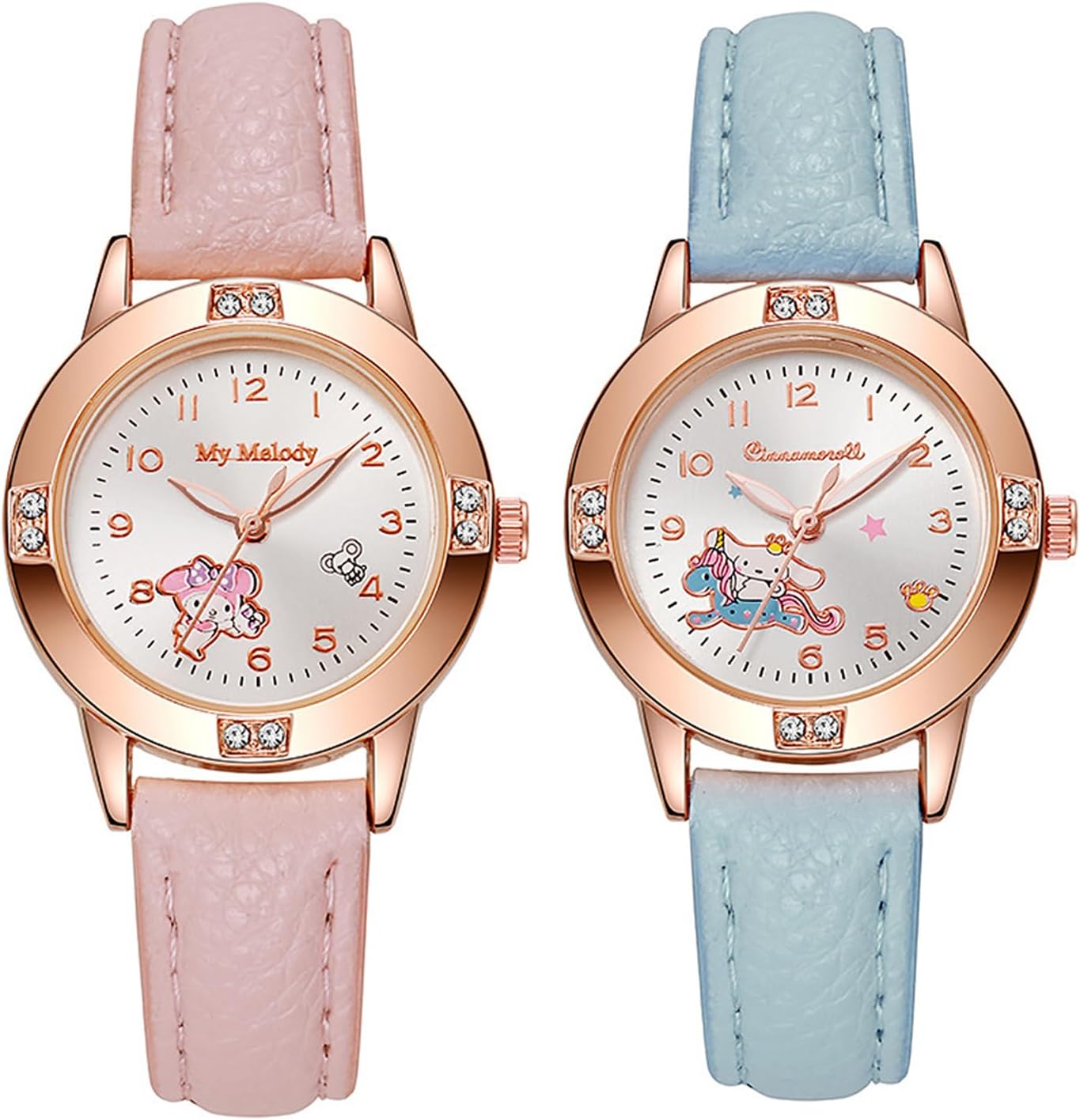 2 Packs Kids Watches for Girls, Toddler Watches Cute Cartoon Children Wrist Watch Easy Read Time Teacher Waterproof Watch