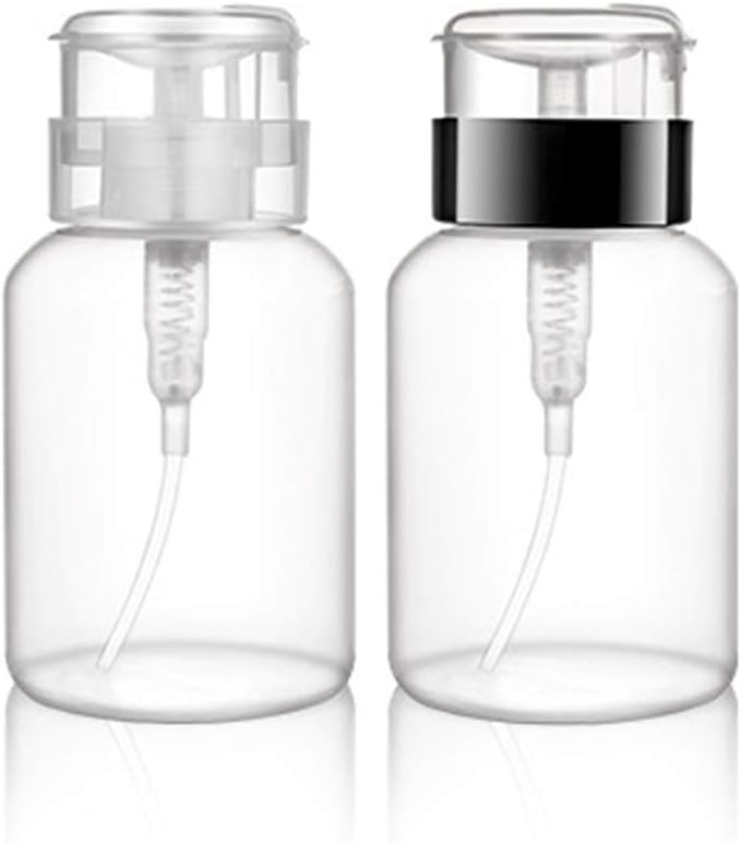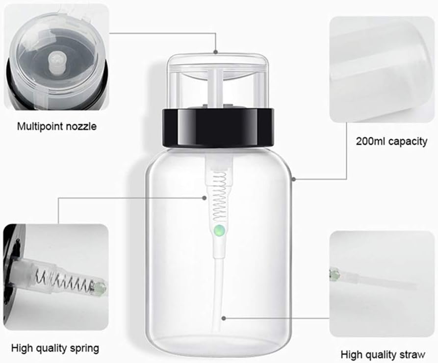 2 Pcs 200ml(6.8oz) Pump Dispenser Bottle for Nail Polish Remover Push Down Empty Plastic Makeup Remover Alcohol Liquid Pumping Dispenser Bottle