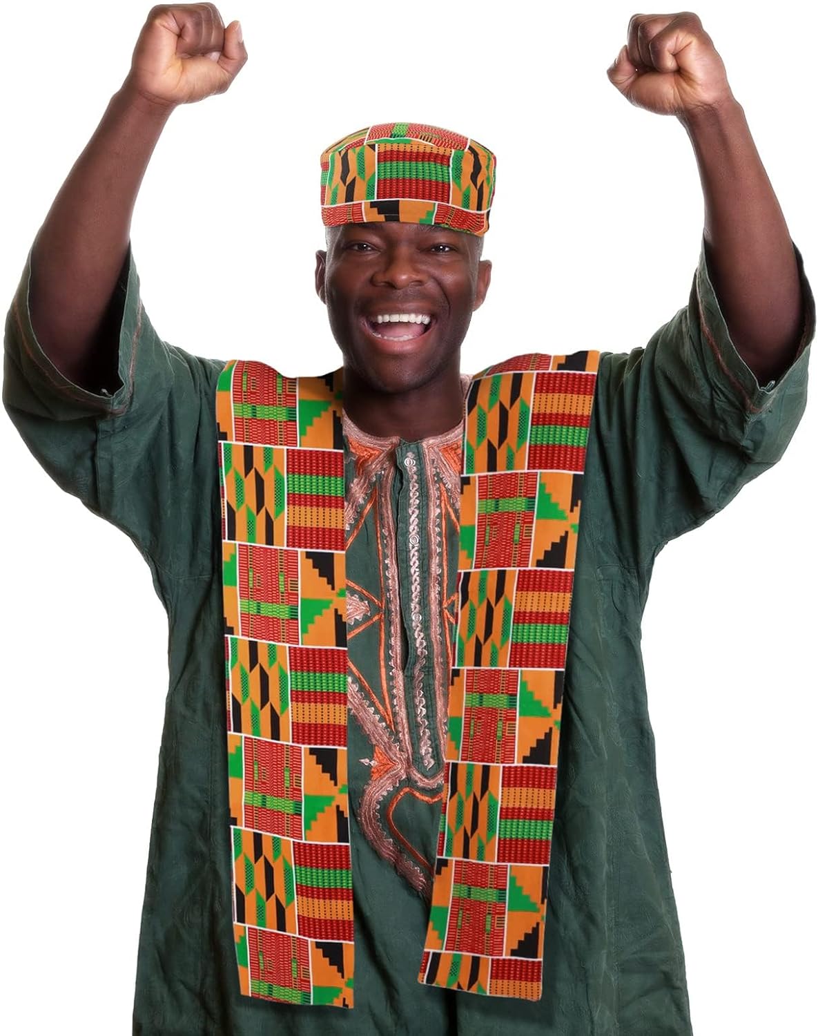 • Reliable and Soft: African kente kufi hats and kente shawls are made of cotton fabric with African style wax prints, comfortable to wear, soft and breathable, available in bright colors such as red, black, yellow and green, so you can enjoy African style