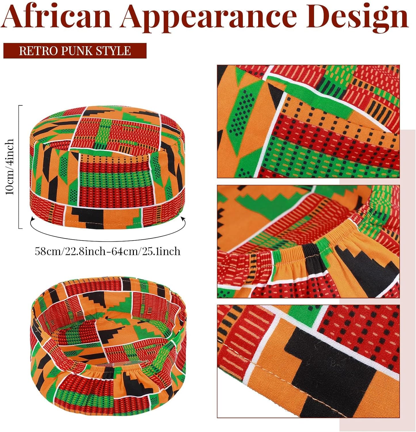 2 Pcs African Kente Pattern Kufi Hat Kente Kufi Hat Men Hat and Kente – BUYO