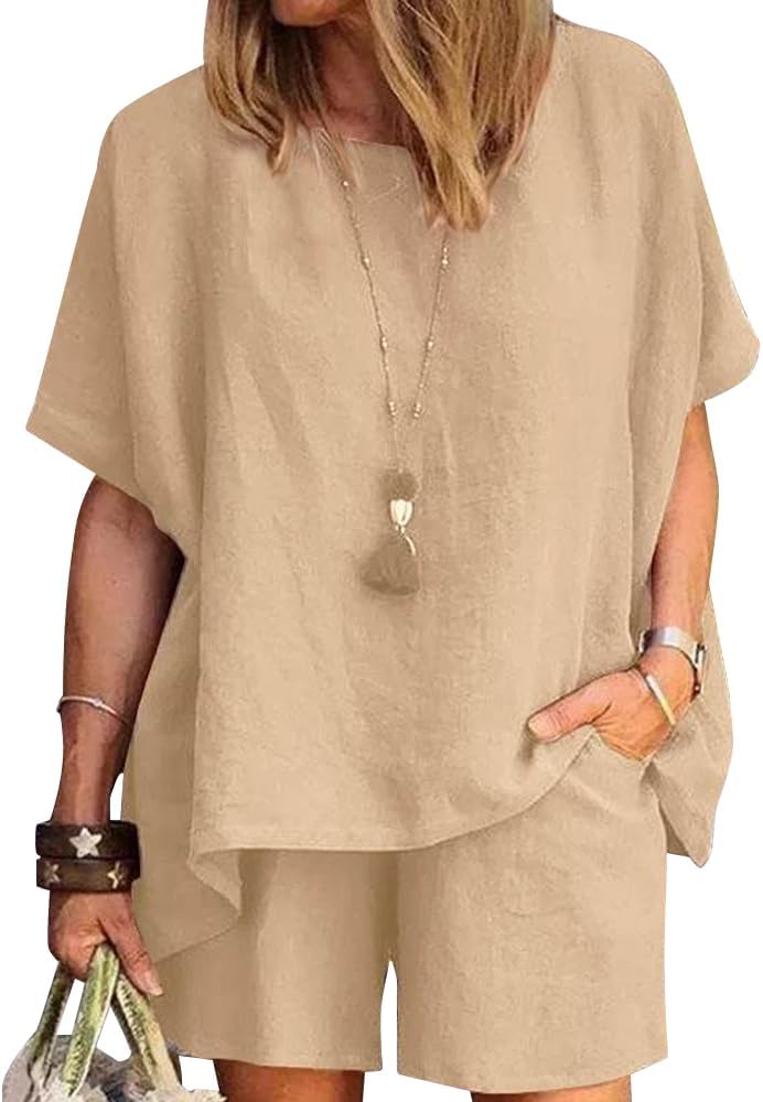 2 Piece Solid Color Casual Outfit Womens Loose Short Sleeves And Shorts Summer Casual Tracksuits Clothing Outfits