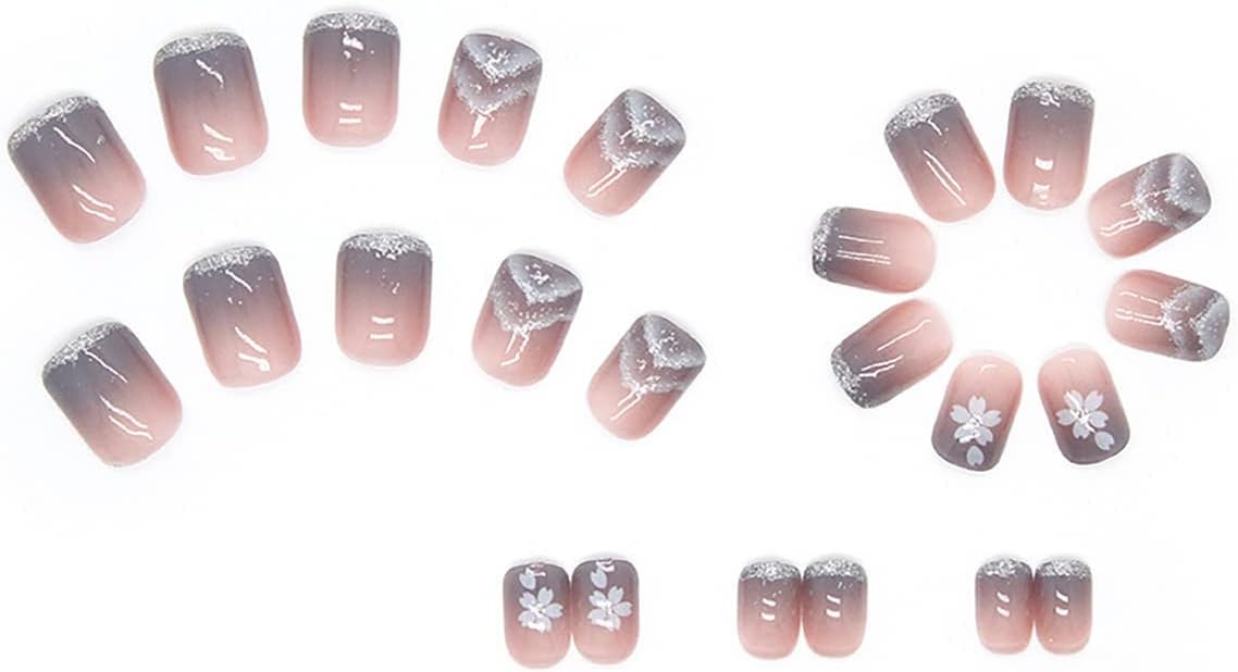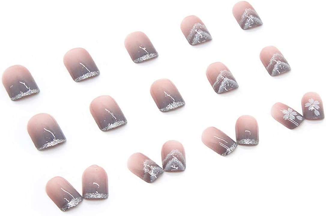 24 Pcs Flower Press on Nails Short Square Fake Nails Nude Purple Cloud – BUYO