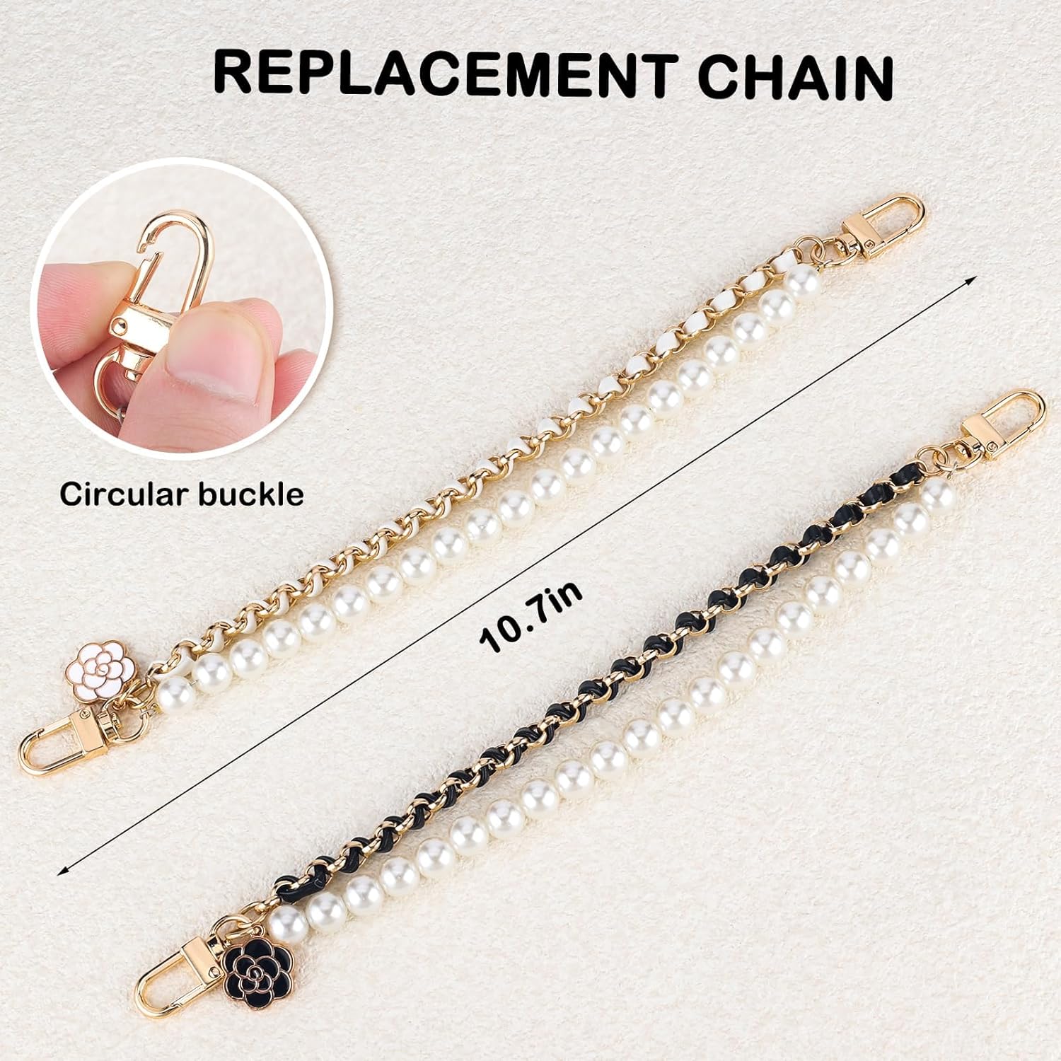 NALACAL Purse Strap Extenders Features:Not every bag shoulder strap is long enough.You may rarely use this bag even if you like it, so why not add a purse strap extender.It can not only extend the length of the bag strap, make you more comfortable when you carry it on shoulder or cross body, but it may also turn your handbag into a shoulder bag and a shoulder bag into a cross-body bag.This makes your bag more practical, it also could be a gorgeous bag charm decorate your purse more attractive, so you may happy to use the purse strap extender to match your outfit, besides your friends will definitely applaud your great idea.So it is also a amazing gift option for your friends and family members.Detachable purse strap extender made of quality alloy, light in weight, bright in color, the love heart part is well made by dripping oil process, making your daily outlook more exquisite.Depending on the color of the bag, you can choose different colors to DIY your bag.The purse strap extender suitable most handbags or shoulder bags, wallets, armpit bags, cross-body bags, make your bag more practical and it also could be a bag chain charms accessory which make your bag more attractive.Purse Strap Extenders Specification:Purse Strap Extenders Color:White and BlackPurse Strap Extenders Material:Metal