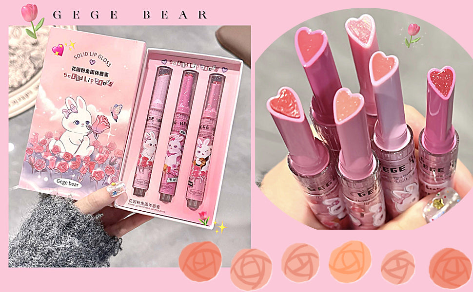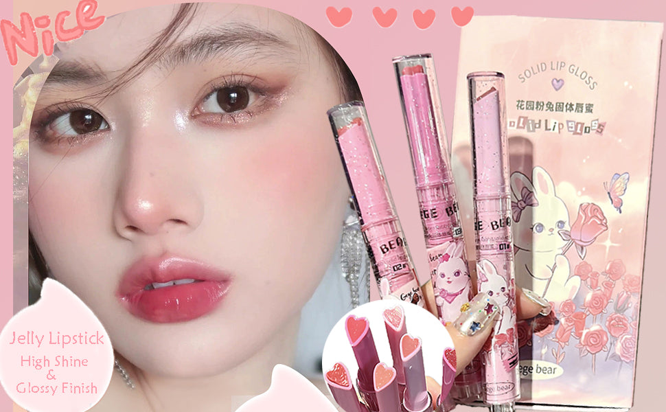 đ©·ăJelly Lipstickă3 colors nourishing mirror hydrating jelly love lipstick, floral honey solid lip nectar lipstick, giving your lips a pure colour.