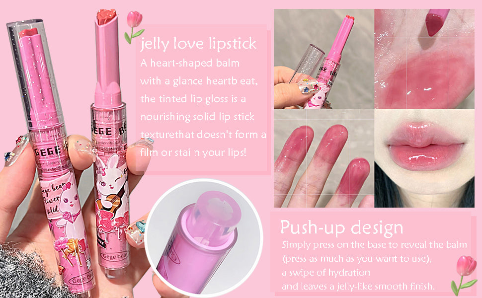 đ©·ăHeart Shaped Lip GlossăA heart-shaped balm with a glance heartbeat, the melting lipstick is a nourishing solid lipstick texture, bringing sheer color to your pout, glides smoothly on the lips and feels comfortable. (press as much as you want to use), a swipe of hydration and leaves a jelly-like smooth finish.