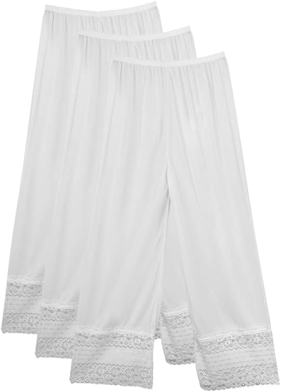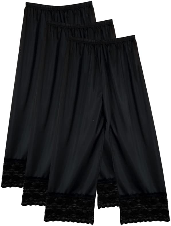 3 Pieces Full Length Soft inner Pants Trousers Big Lace Silk 100% with Elasticised Waistband Women