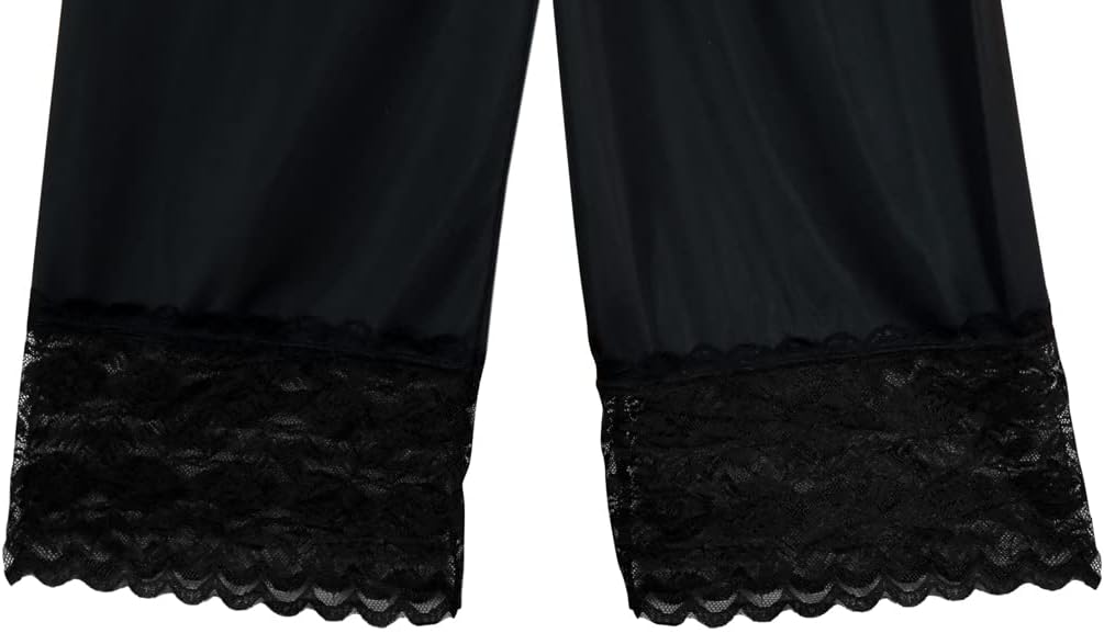 3- Pieces Full Length Soft inner Pants Trousers Big Lace Silk 100% with Elasticised Waistband Women