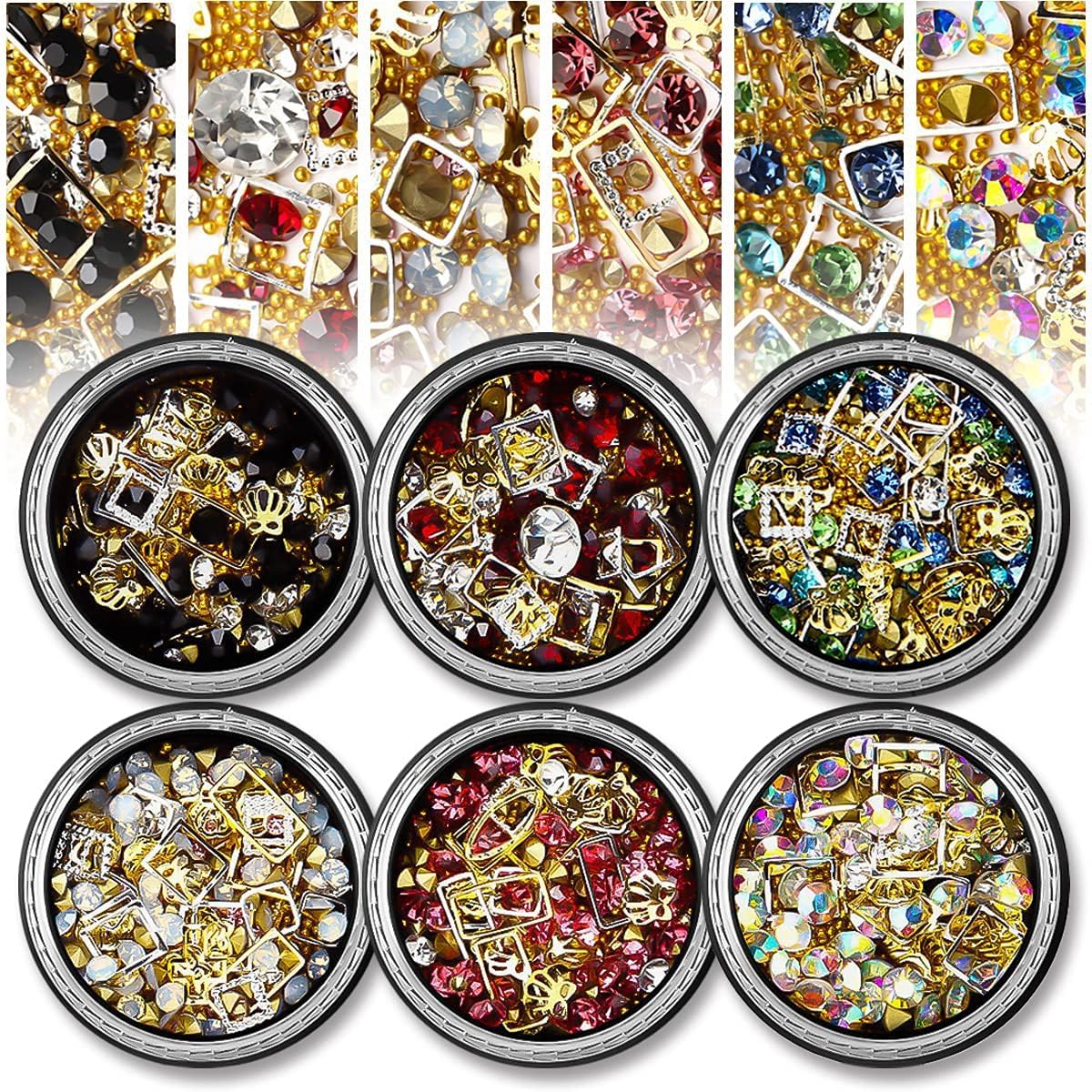 3D Nail Charms, KASTWAVE Gold Nail Studs Nail Art Rhinestone Nail Jewels Gem Pearls Nail Decoration Kit, Picker Pencil 6 Boxes for Nail Art Designs Supplies DIY Crafting