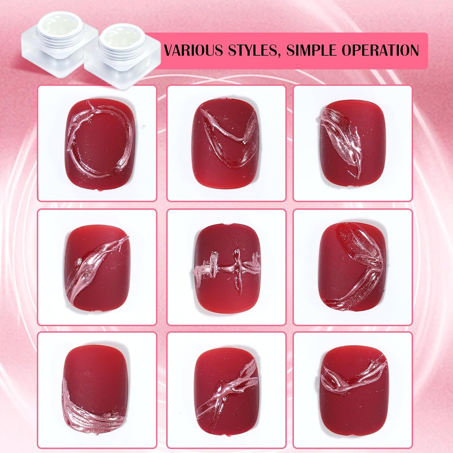 3D Nail Painting Gel, 3D Metallic Painted Nail Gel, Nail Art Creative Elastic Painted Glue, Metallic 3D Nail Art Design, for DIY Nail Home Manicure 2PCS
