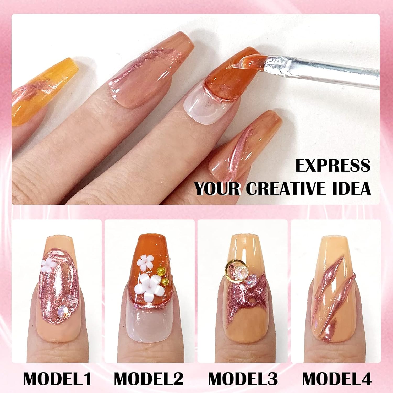 đăMultifunctional Nail GelăSemi cure modeling gel can be used to make a 3D sculpture and rub the chrome nail powder getting a perfect mirror effect, to be rhinestone adhesive, to make a delicate carving painting. 2PCS 5ml semi cure gel enough for home salon DIY nail art.
