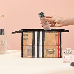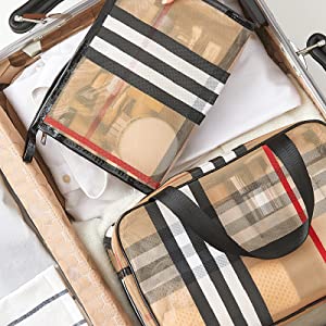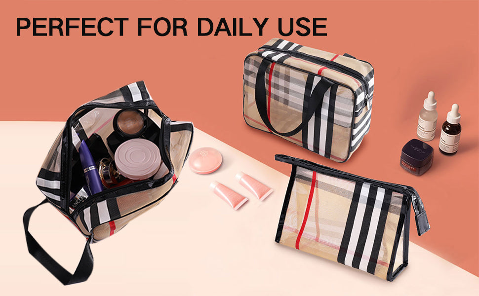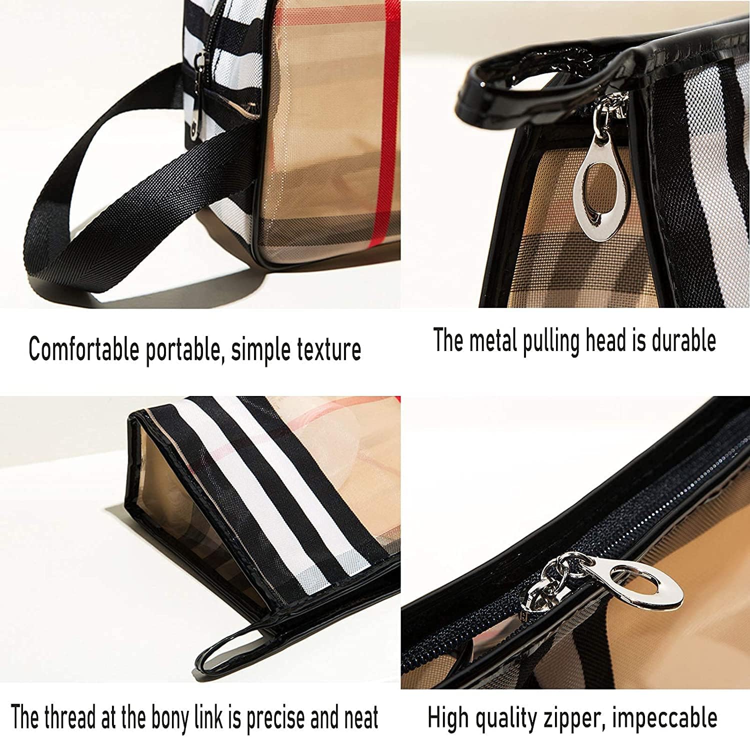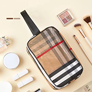 - 👜High quality: The sturdy zipper and delicate stitching are safe and secure, the cosmetic bag with handle is easy to carry, and the plaid stripe style is fashionable and simple.