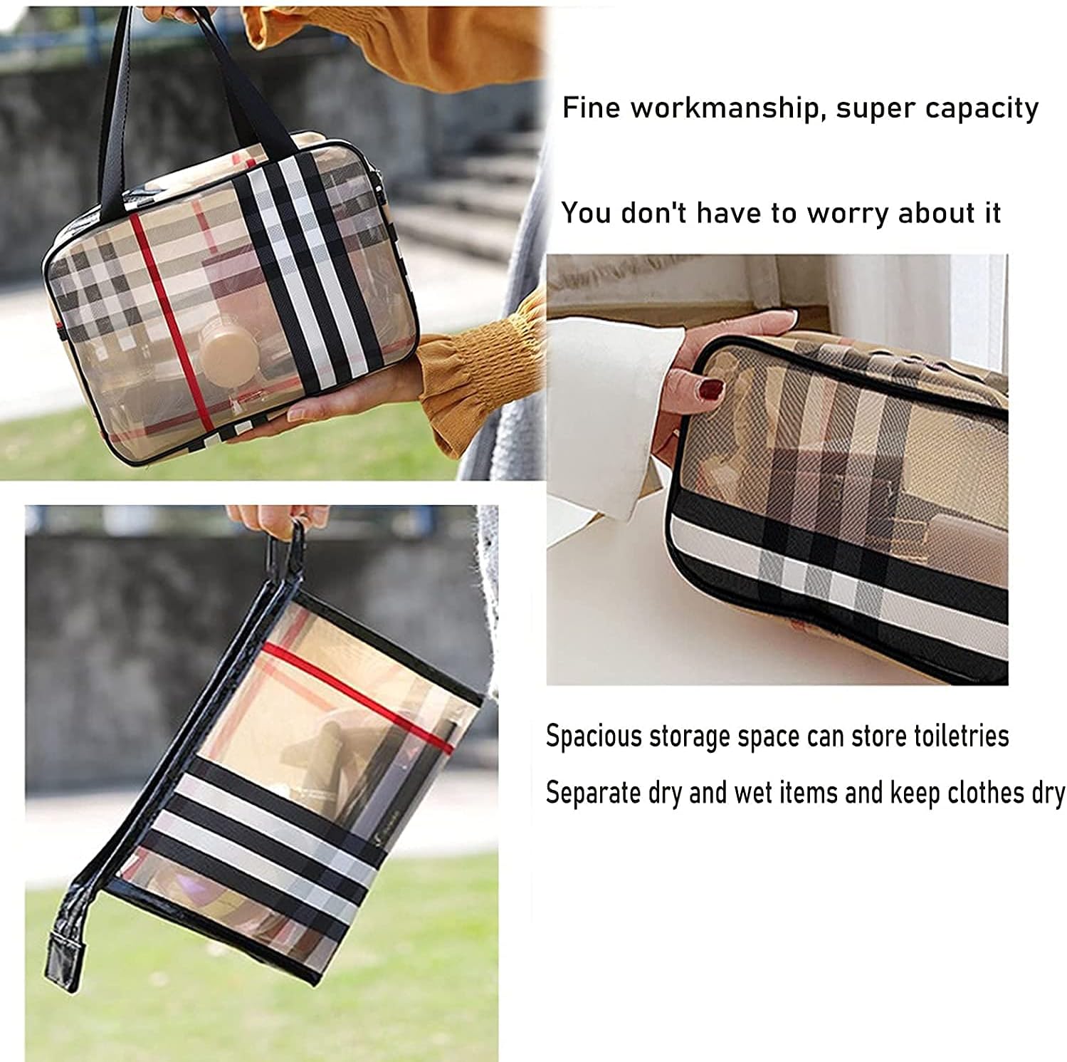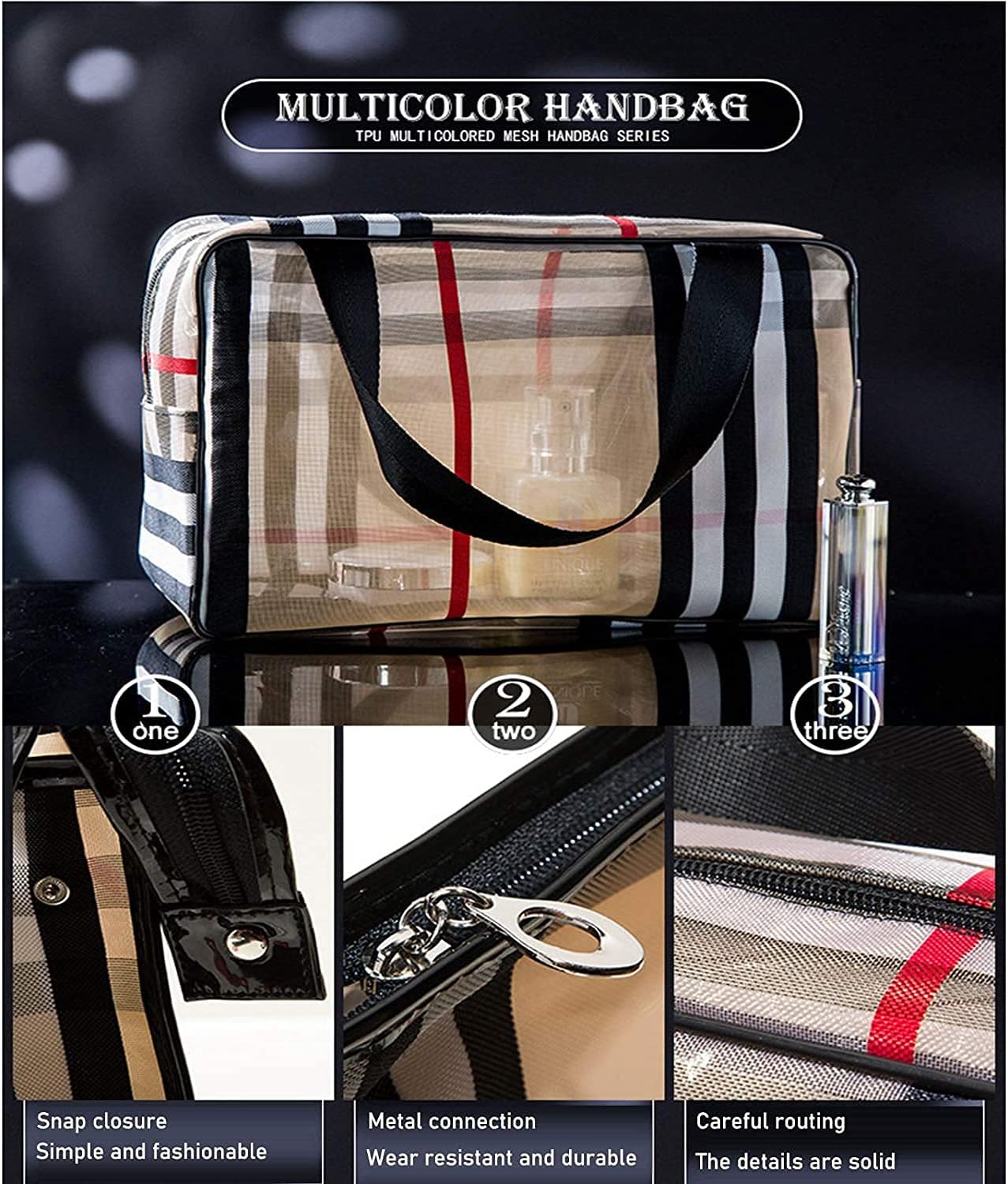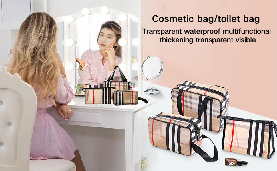 - 👜Makeup Travel Bag Set: The zippered cosmetic bag is made of durable transparent waterproof material. The outer layer is made of TPU mesh material, and the inner layer is made of transparent PVC material. Three different sizes can meet your different storage needs.