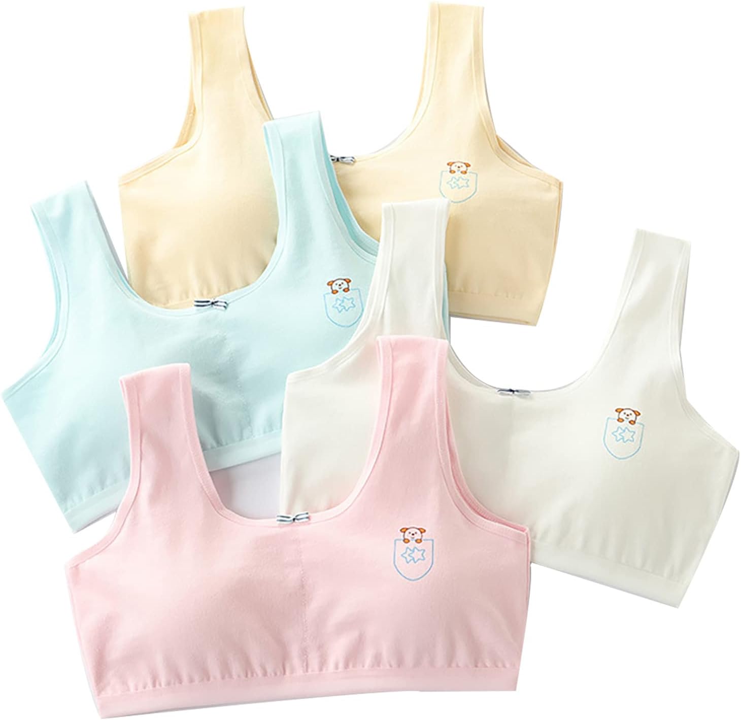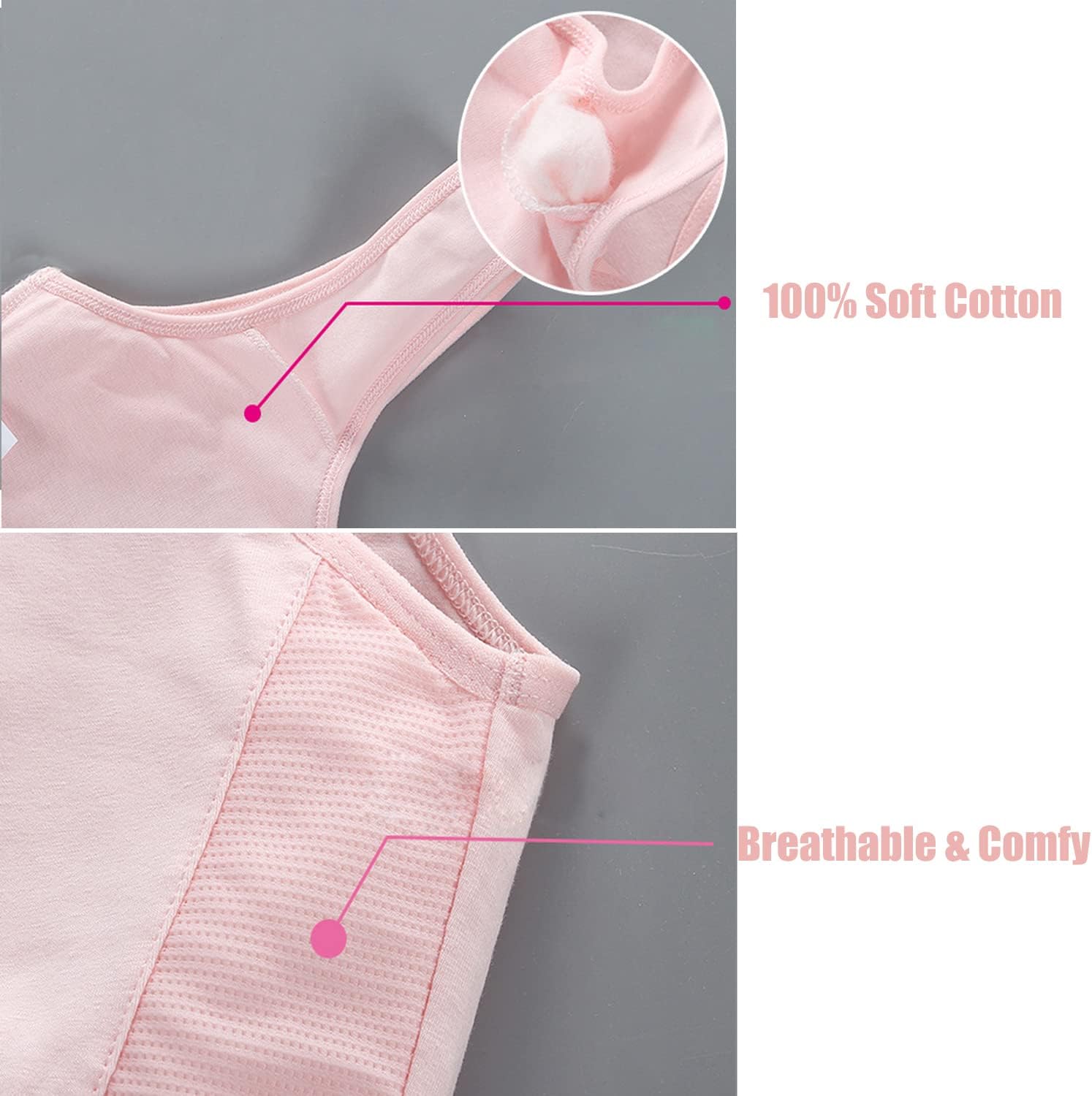• Comfy-Breathable: Soft material is great for sensitive skins, stays close to the skin, leaving enough room for her budding body. These colorful and comfortable training bras feature padding for added support and modesty.