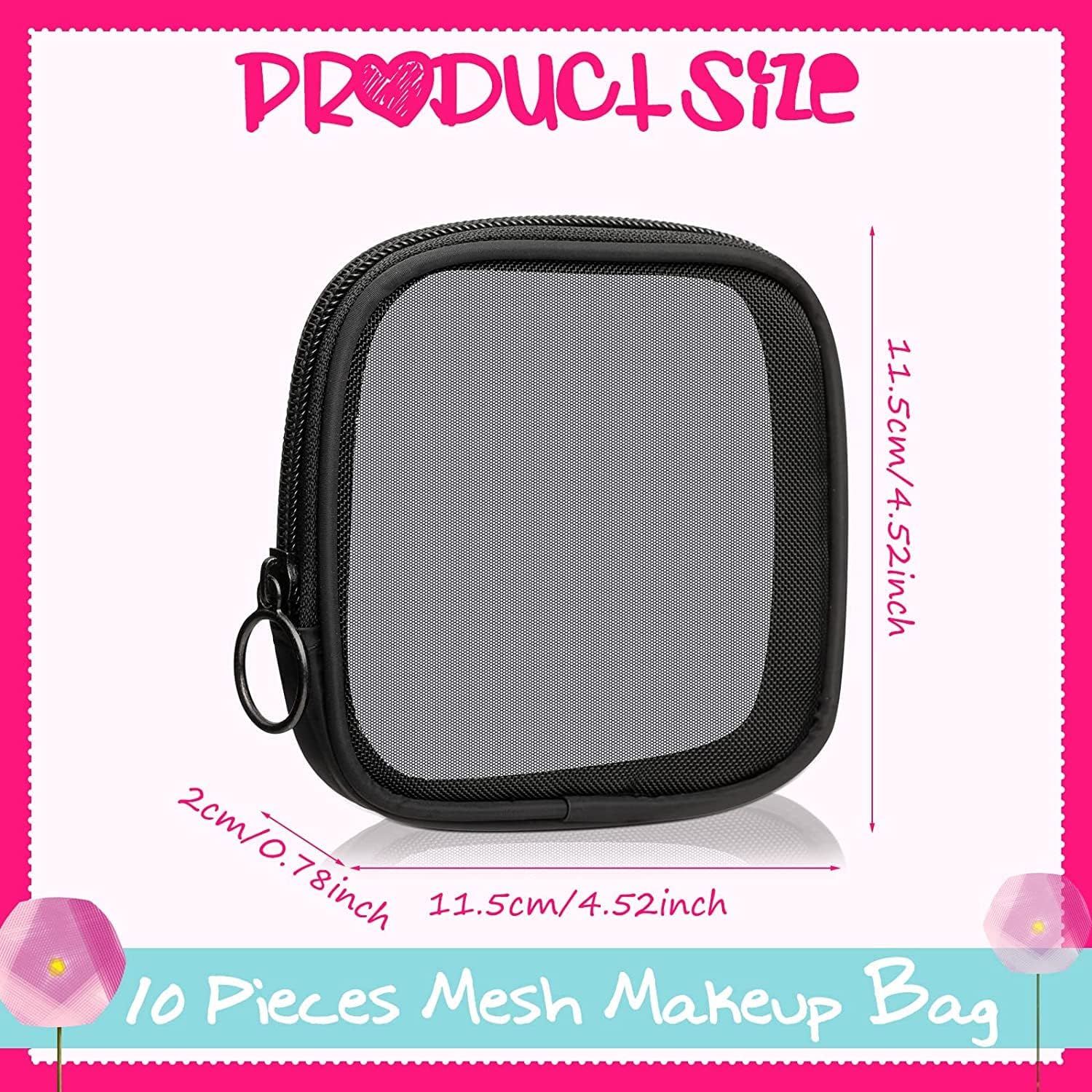 - Proper Size: the mesh zipper pouch is about 11.5 x 11.5 cm/ 4.53 x 4.53 inches, proper for you to hold your stationery and makeup tools, convenient to take it anywhere and anytime, paying attention to checking its size