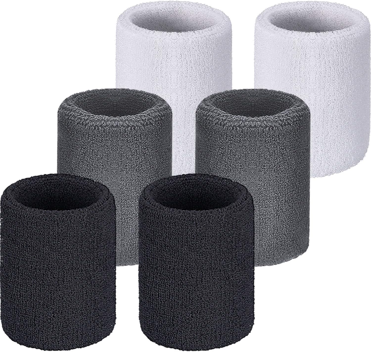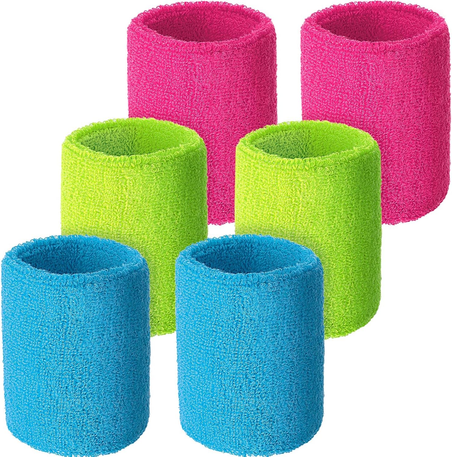 6 Pack Wrist Sweatbands Tennis Wrist Bands Absorbent Sweatbands for Football Basketball Running Athletic Sports and Working Out