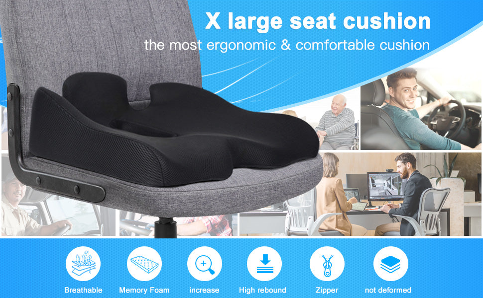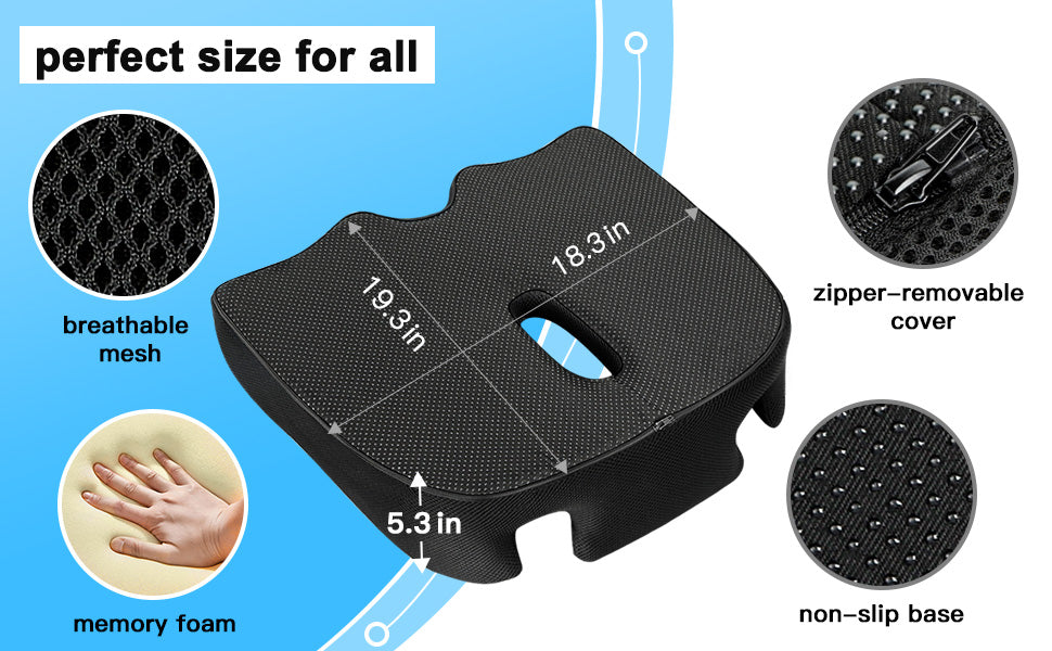 ăRelieves Pain and Improves PostureăThe ergonomic "W" shape of our cushion provides support and comfort while reducing pressure on your lower back, waist, and hips. It also helps improve your posture, reducing the risk of pain and discomfort.