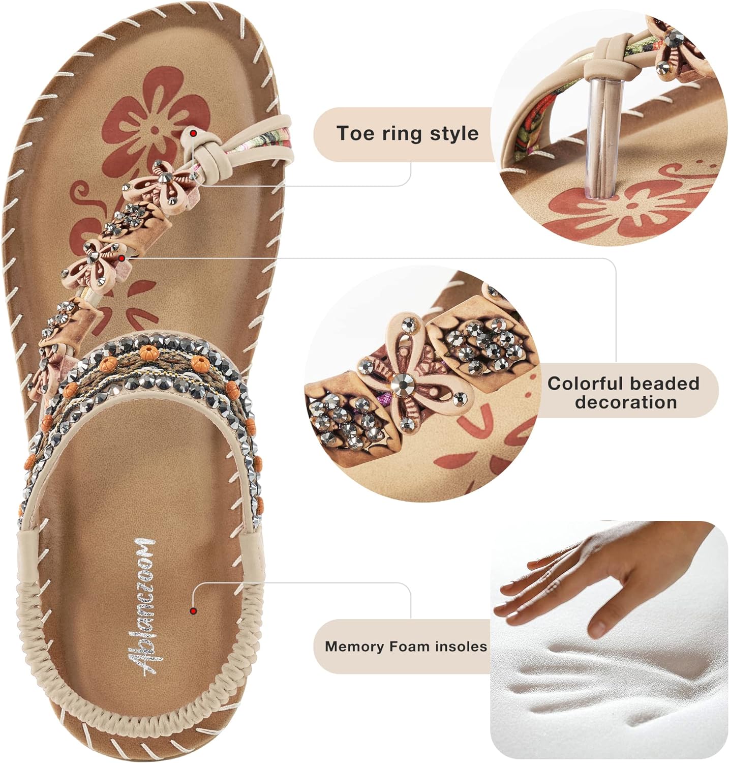 Ablanczoom Womens Sandals Flats Shoes: Comfortable Bohemian Beaded Dre – BUYO