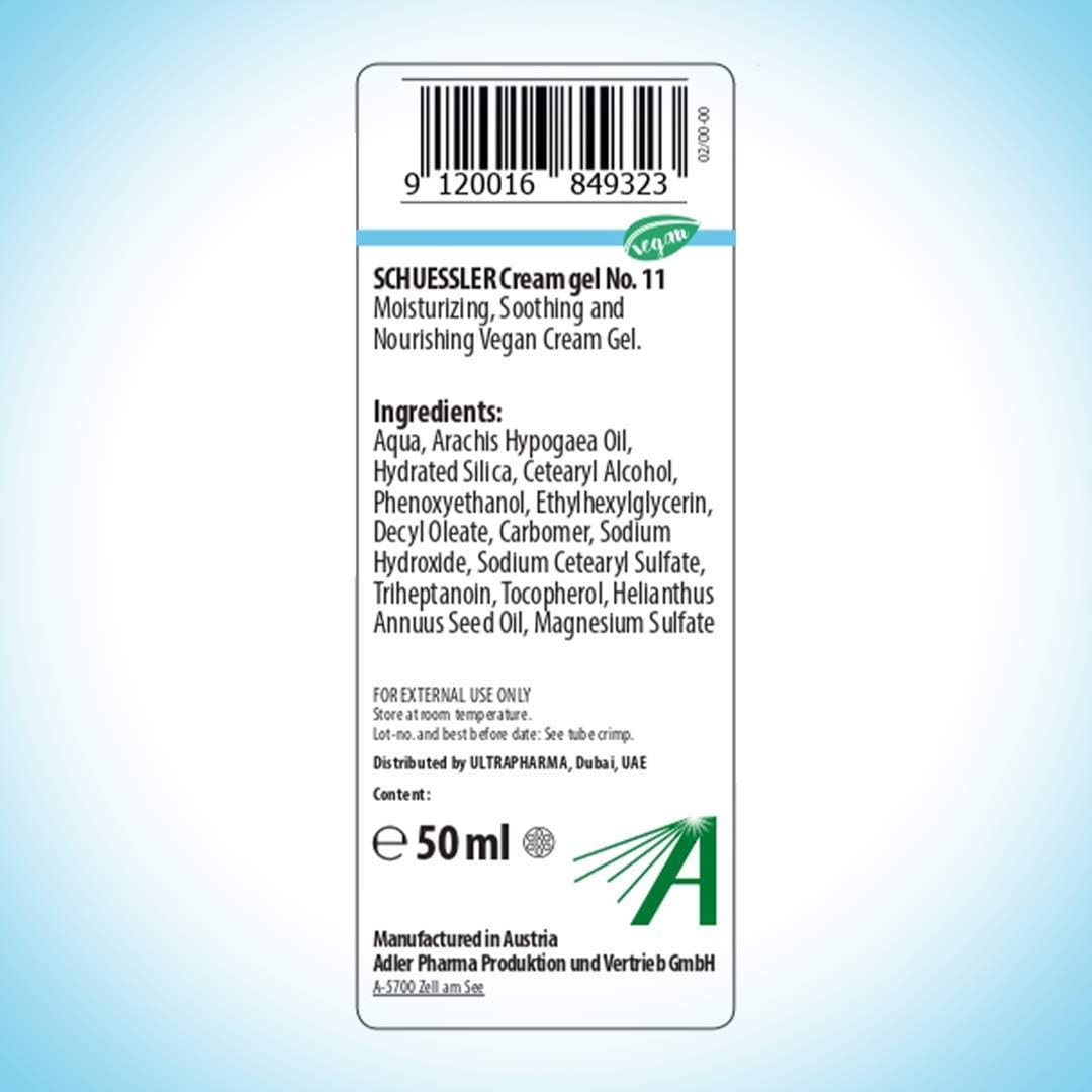 Adler Schuessler No 11 Moisturizing and Soothing Day Cream Gel – Skin and Nail Gel Care – Vegan Hydrating Lotion with Silicea – Lightweight Formula with Quick Absorption – All Skin Types - 50 ml Tube