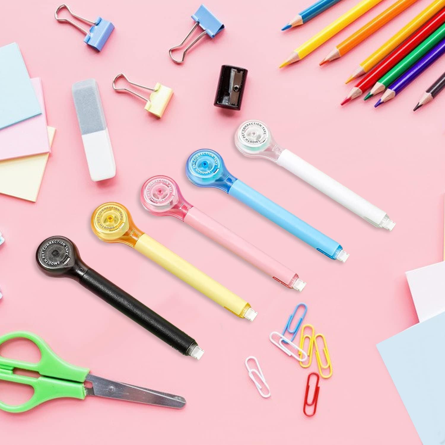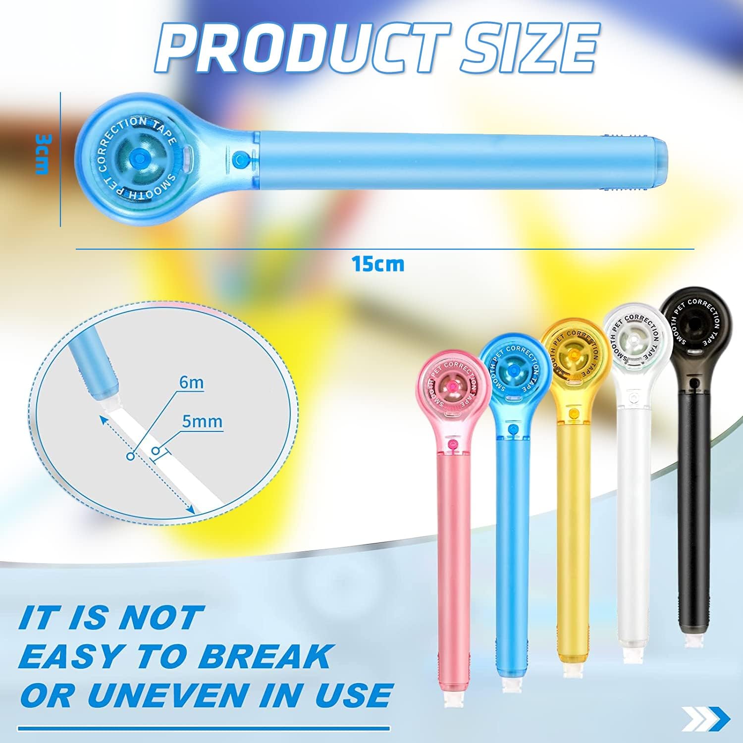 Assorted Colors for Sharing: there are 5 pieces of correction tape pens in the package, which are available in 5 different colors in appearance, including black, white, pink, blue and yellow; The abundant quantity can satisfy your needs for daily usage and replacement