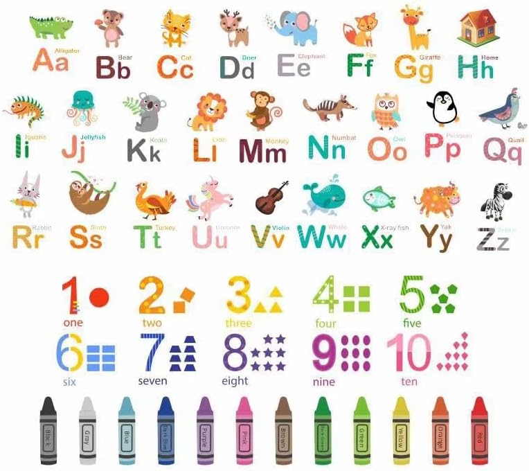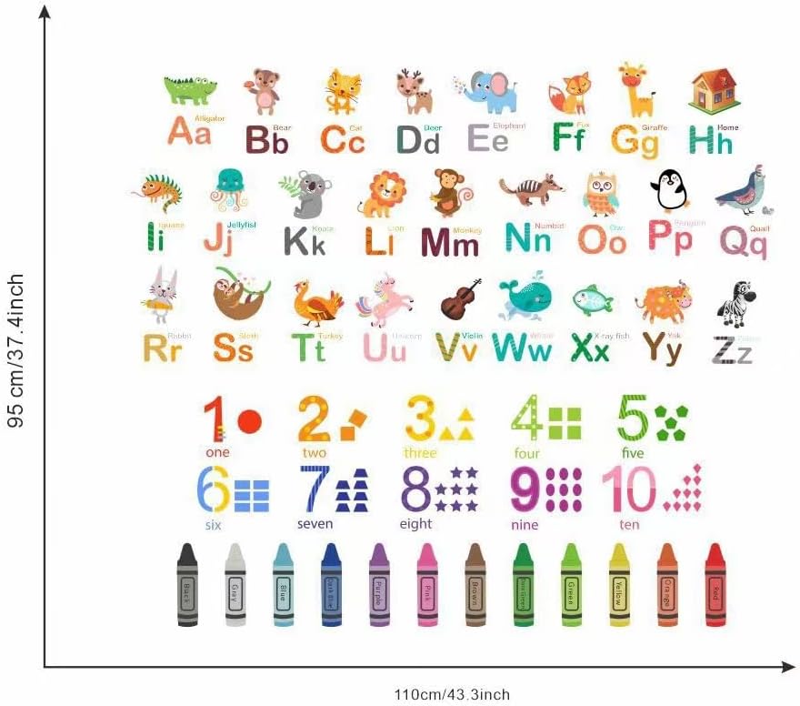 Animal Alphabet Numbers Colour Decals Stickers Kids Peel and Stick Removable for Room décor Letters ABC Classroom playroom Decorations Educational Bedroom Nursery