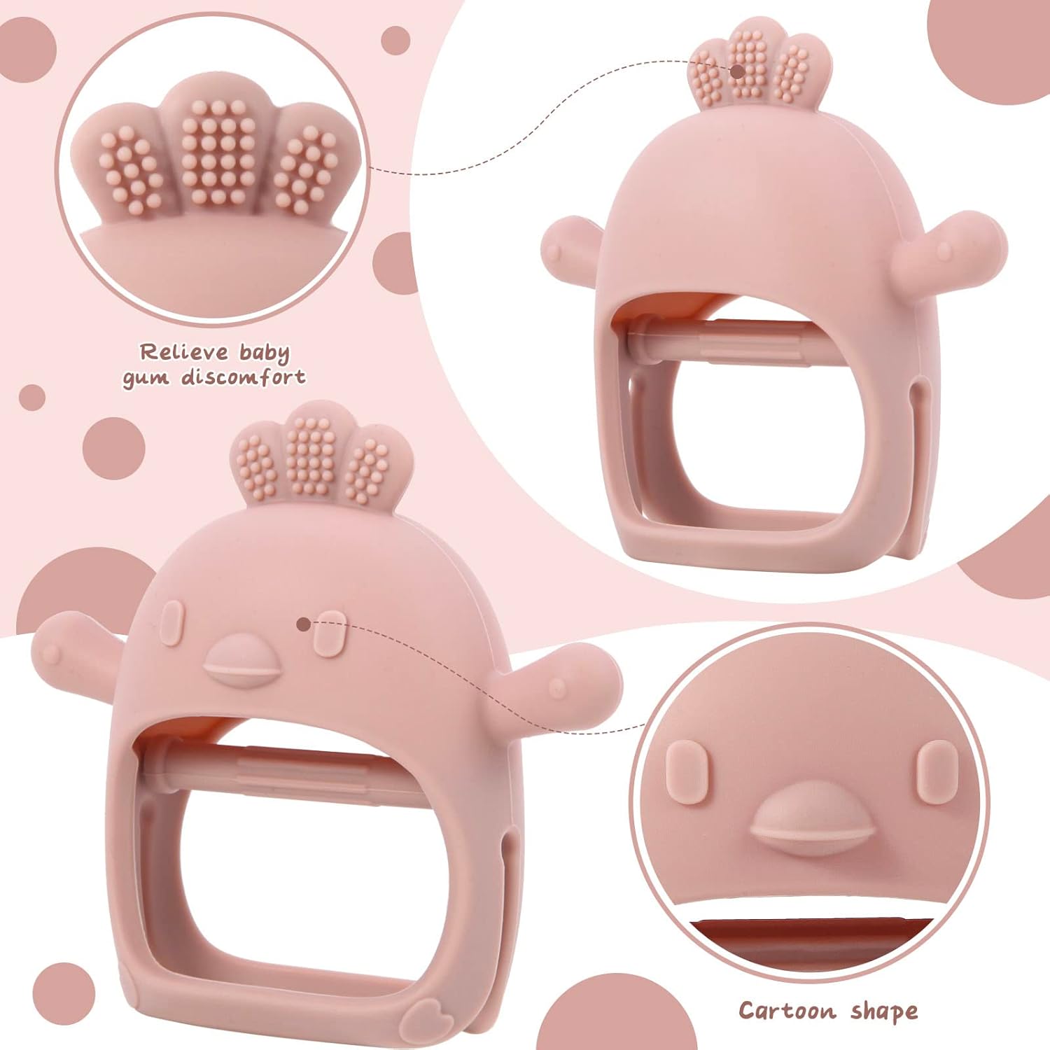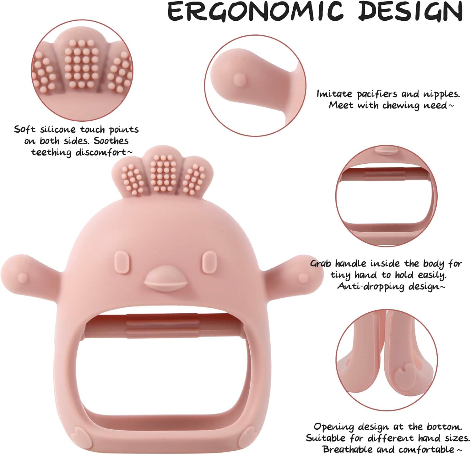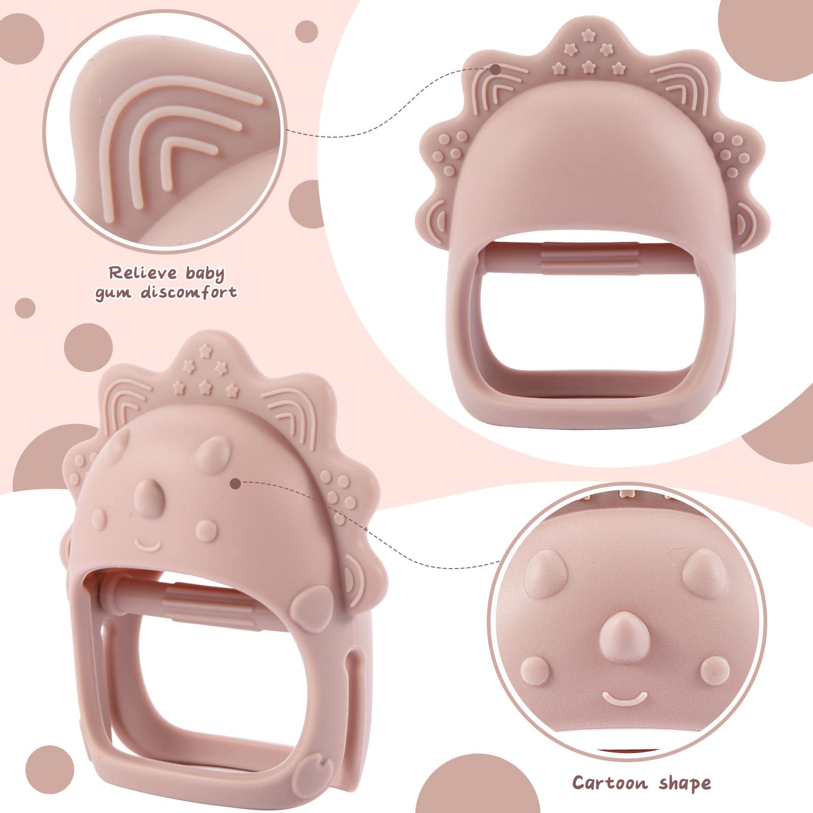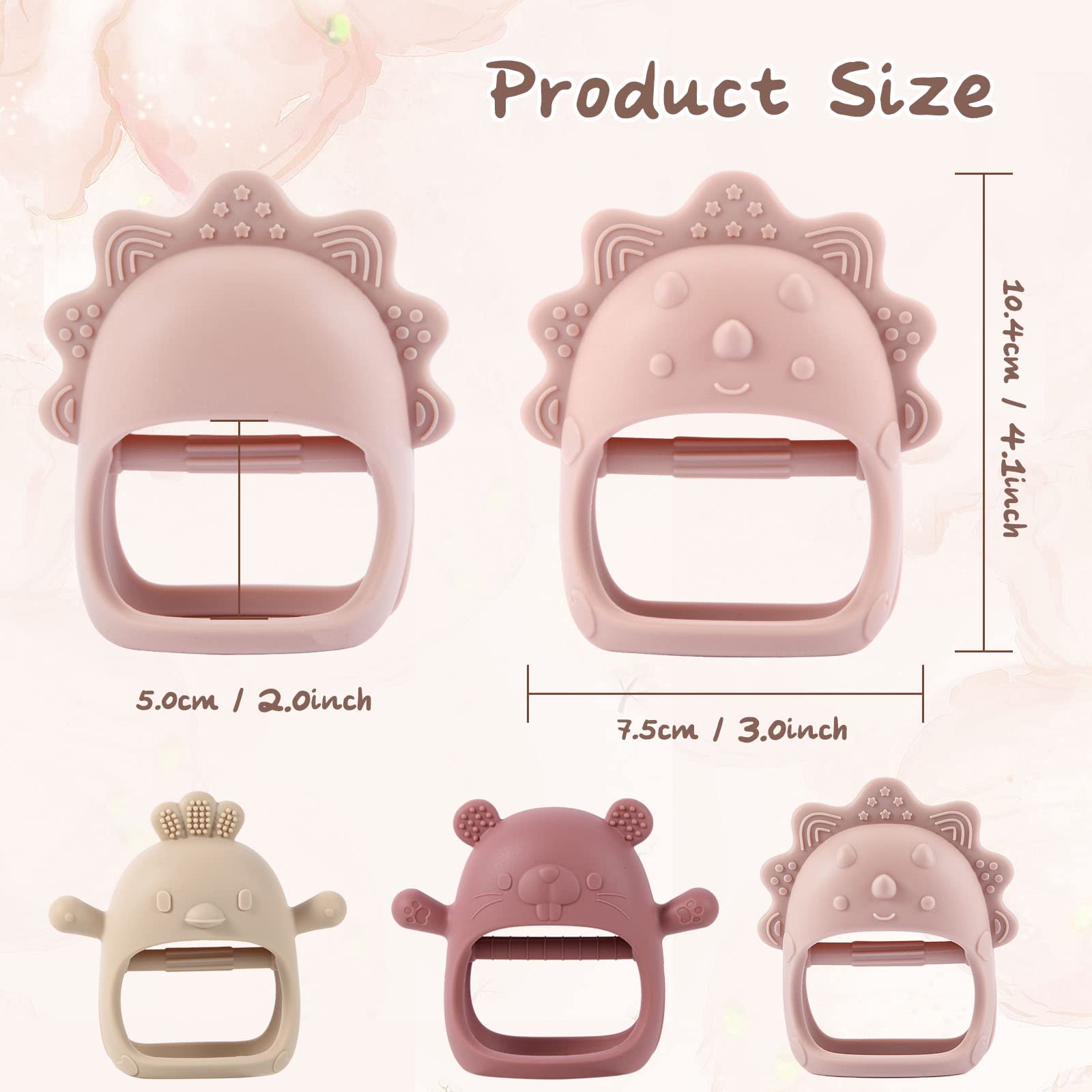 AoiSouk Baby Teether, Silicone Teething Toys for Babies 0-6 Months, Baby Chew Toys for Sucking Needs, Teething Pacifier, BPA Free Anti-Drop Silicone(Dark Pink&Rose Pink&Beige)